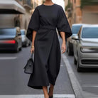• Veelzijdigheid: Of je nu naar kantoor gaat, een feestje hebt of een relaxte dag plant, deze jurk past altijd