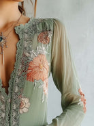 Op zoek naar iets bijzonders? De Julia Blouse combineert een subtiel bohemien gevoel met een elegante afwerking. De zachte saliegroene tint vormt een rustige basis voor de verfijnde bloemenborduursels, terwijl het fijne kant langs de halslijn en mouwen zorgt voor een stijlvolle touch. Ideaal voor dagen waarop je je stijlvol én comfortabel wilt voelen, zonder al te veel moeite.