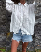 De Lisette Geborduurde Blouse is elegant, tijdloos en perfect voor dagen waarop je toch stijlvol voor de dag wilt komen. Gemaakt van een katoenmix van hoge kwaliteit, biedt deze blouse ultiem comfort, zelfs bij stijgende temperaturen. De subtiele borduursels geven de blouse een vrouwelijke en verfijnde uitstraling, terwijl de klassieke kraag zorgt voor een nette en stijlvolle look. De lange mouwen maken deze blouse ook geschikt voor iets formelere of frissere gelegenheden. De los vallende pasvorm oogt elegant en voelt heerlijk luchtig aan. Draag ‘m met een broek, rokje of short voor een effortless look van dag tot avond.