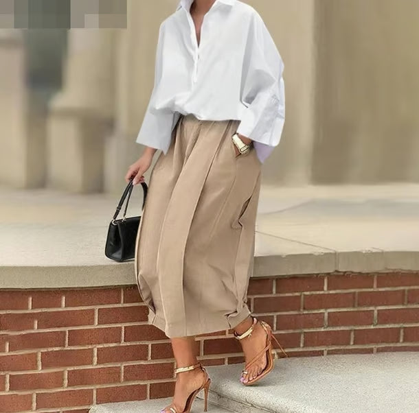 De Manon Long Sleeve Blouse is het perfecte voorbeeld van hoe comfort en elegantie samenkomen in één item. De soepele, los vallende pasvorm zorgt voor luchtigheid en bewegingsvrijheid, terwijl de subtiele V-hals en de chique kraag een vrouwelijke twist geven aan het verder nonchalante ontwerp. Of je haar nu combineert met een chique pantalon, je favoriete jeans of een rok, deze blouse geeft je look moeiteloos stijl en klasse voor elke gelegenheid! Subtiel opvallend, flatterend én tijdloos, een item waar je telkens naar teruggrijpt.