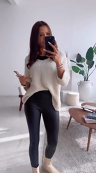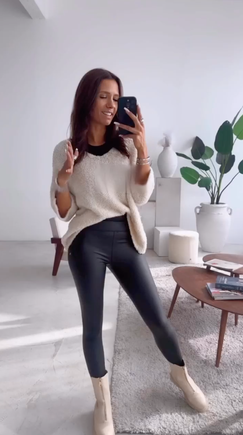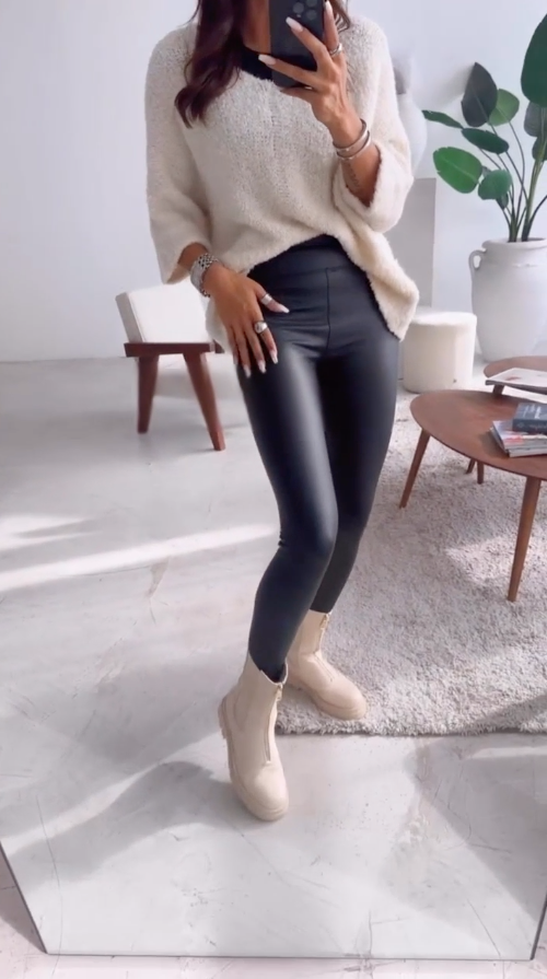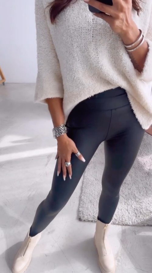 De Danique Vegan Leather Legging is hét kledingstuk dat stijl, comfort en zelfvertrouwen samenbrengt. Vergeet leggings die knellen, afzakken of niet mooi aansluiten, dit model is ontworpen om jouw figuur op de beste manier te flatteren en tegelijkertijd heerlijk te zitten. De hoge tailleband sluit perfect aan zonder in je buik te snijden, waardoor je een mooi glad silhouet krijgt en je je de hele dag comfortabel voelt. Dankzij de lichte stretch vormt de legging zich soepel naar je lichaam, zonder te strak of beperkend aan te voelen. Het vegan leer oogt luxe en stijlvol, maar voelt zacht en soepel aan, je hebt de uitstraling van leer, met het comfort van een tweede huid. Bovendien blijft de stof lang mooi, kreukt niet en schijnt niet door. Ideaal dus om eindeloos te combineren: met een oversized trui en sneakers voor een casual look, of met hakken en een blazer voor een avond uit.