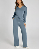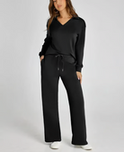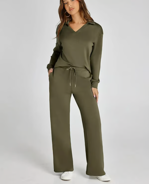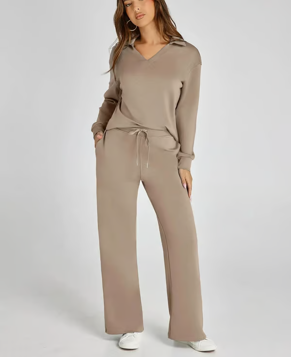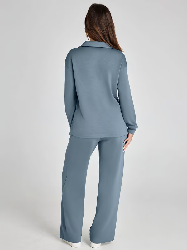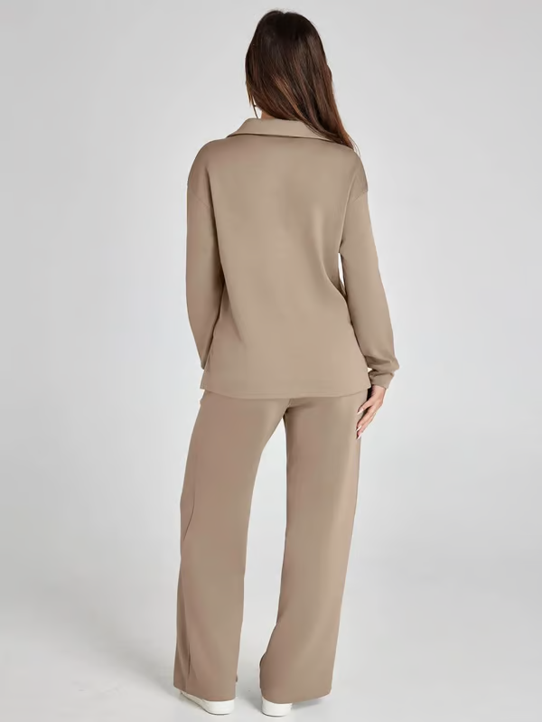 De Ivana Co-ord Set is precies wat je nodig hebt voor dagen waarop comfort en stijl hand in hand mogen gaan. De set bestaat uit een zachte trui met subtiel kraagje en een losvallende broek met wijde pijpen – samen vormen ze een elegante, relaxte look die je overal kunt dragen. Ideaal voor een dag thuis, een lunchdate of een wandeling door de stad. De lichte, soepele stof voelt heerlijk aan en laat je huid ademen, wat deze set ook perfect maakt voor het voorjaar. Verkrijgbaar in meerdere kleuren, zodat er altijd een tint bij zit die bij jou past.