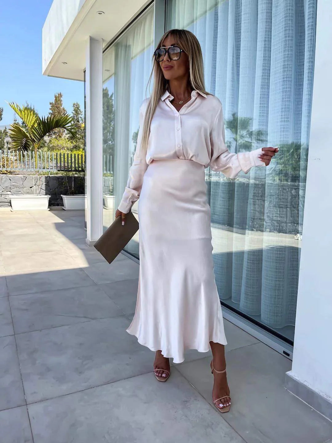 - Luxueuze satijnen stof – Het zachte satijn voelt heerlijk aan op de huid, waardoor je de hele dag of avond in comfort kunt doorbrengen, zonder concessies te doen aan je stijl.
