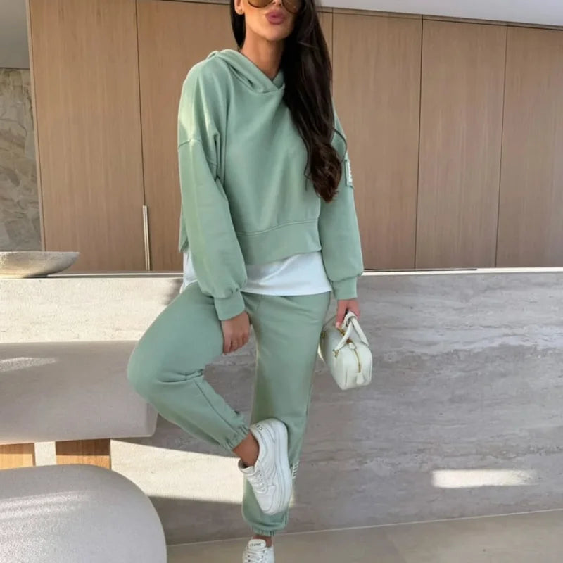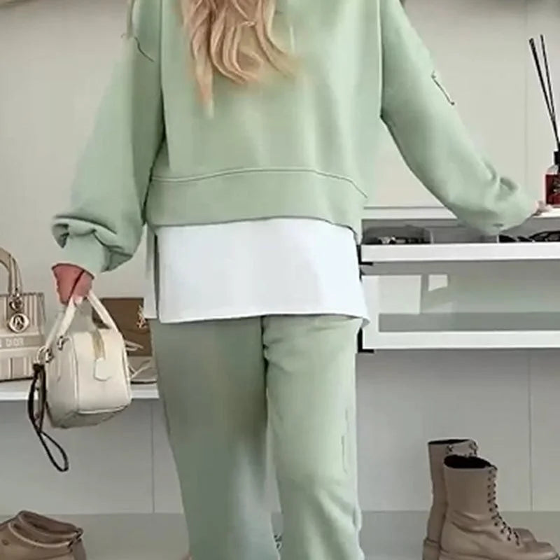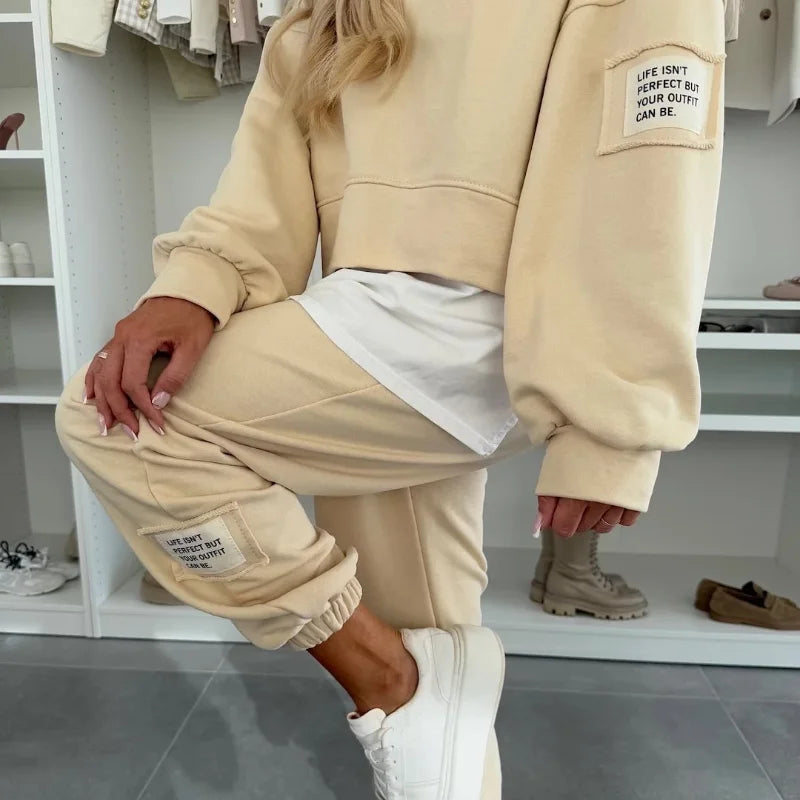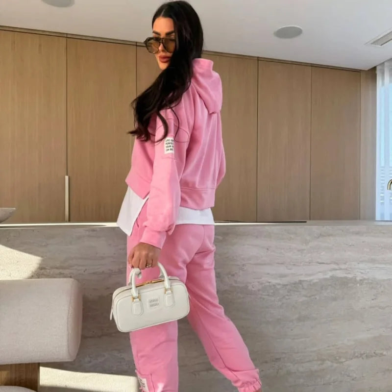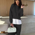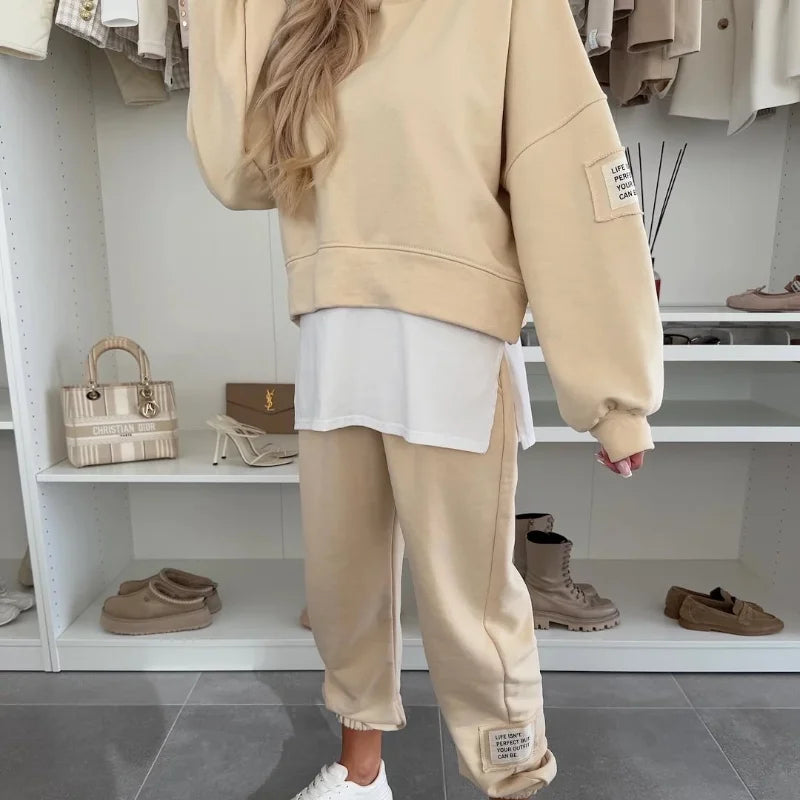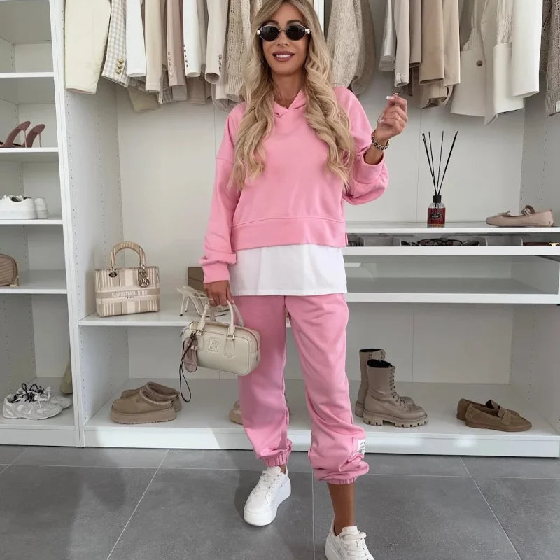 De Kendra Co-ord Set is jouw nieuwe go-to voor een relaxte maar stijlvolle look. Deze tweedelige set bestaat uit een zachte hoodie en bijpassende joggers, beide gemaakt van een comfortabele katoenmix die heerlijk aanvoelt en genoeg stretch biedt voor ultiem draagcomfort. De subtiele laagjeslook door de langere witte top maakt de outfit speels en modieus, zonder in te leveren op gemak. Perfect voor een dagje shoppen, een lunchdate of gewoon lekker thuis relaxen, met deze set zie je er altijd moeiteloos verzorgd uit.