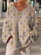 De perfecte mix van stijl en comfort: Onze Marieke Sweater is alles wat je nodig hebt om stijlvol en comfortabel door het seizoen te komen. Gemaakt van super zachte gebreide stof, biedt deze trui het ultieme comfort, perfect voor de koudere dagen. Het tijdloze ontwerp met subtiele, speelse details maakt de trui ideaal voor elke gelegenheid, van relaxte weekenden tot chique avonden. De flatterende pasvorm zorgt ervoor dat je er altijd elegant uitziet, zonder in te boeten op comfort. Combineer hem met een nette broek voor een verfijnde uitstraling, of draag hem met je favoriete spijker voor een casual look. Het schattige hartjes design geeft de trui een romantische en speelse vibe, ideaal voor elke moderne vrouw die houdt van subtiele statement pieces. Maak van de Marieke Hart Sweater jouw nieuwe favoriete item voor dit seizoen en voeg een vleugje speelse elegantie toe aan je garderobe!