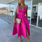 De Florence Maxi jurk is jouw go-to keuze voor zwoele dagen waarop je moeiteloos stijl en comfort wilt combineren. Deze jurk is gemaakt van een soepele, luxe stof die niet kreukt en licht aanvoelt op de huid. De diepe V-hals, dunne bandjes en mooie zijsplit geven de jurk een vrouwelijke en elegante uitstraling. De jurk valt mooi langs je lichaam en beweegt sierlijk met je mee, perfect voor een een etentje, een feestje of andere gelegenheid. Verkrijgbaar in meerdere kleuren, zodat je altijd een variant vindt die past bij jouw stijl of stemming. Combineer met sandalen voor een casual look of draag ‘m met hakken en sieraden voor een elegante avondoutfit.