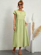 De Josefin Maxi Jurk is alles wat je zoekt: luchtig, flatterend en stijlvol zonder moeite. Deze elegante jurk heeft klassieke mouwen en is gemaakt van een soepel vallende stof die licht aanvoelt op de huid en comfortabel met je meebeweegt. Dankzij de handige steekzakken is de jurk niet alleen mooi, maar ook praktisch. De vrouwelijke halslijn en vloeiende pasvorm flatteren je figuur zonder strak te zitten. De elegante maxi lengte zorgt voor een slank silhouet en maakt deze jurk perfect voor zowel casual als feestelijke momenten.