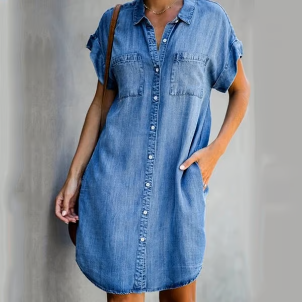 De Karina Denim Jurk is zo'n item dat je keer op keer uit de kast trekt. Gemaakt van soepel vallend, ademend denim dat heerlijk zit en moeiteloos met je meebeweegt. De relaxte pasvorm, opgerolde mouwtjes en subtiele V-hals geven de jurk een nonchalante, vrouwelijke uitstraling, precies goed voor een dagje stad, een lunch in de zon of zelfs een casual kantoor look. Combineer met sneakers, sandalen of een riempje in de taille voor net wat meer vorm. Verkrijgbaar in meerdere kleuren, dus eindeloos te stylen naar jouw smaak.