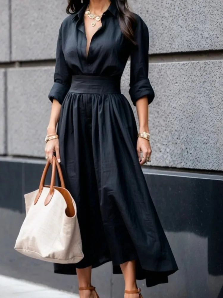 De Natalie Linnen Maxi Jurk is zo’n jurk die je het liefst elke dag draagt. De jurk is gemaakt van een zachte katoen mix en voelt heerlijk comfortabel aan. De jurk valt losjes om het lichaam zonder vorm te verliezen en geeft je alle bewegingsvrijheid die je nodig hebt. De subtiele V-hals en driekwart mouwen zorgen voor een stijlvolle, vrouwelijke uitstraling zonder overdaad. Of je nu naar kantoor gaat, een lunchafspraak hebt of gewoon een ontspannen dag plant: met de Natalie Linnen Maxi Jurk zie je er moeiteloos verzorgd uit. Combineer met hakken, boots of sneakers en je bent helemaal klaar. De Natalie Linnen Maxi Jurk is een musthave in je garderobe: comfortabel, vrouwelijk en verrassend veelzijdig. Eén jurk, eindeloos veel draagmomenten!