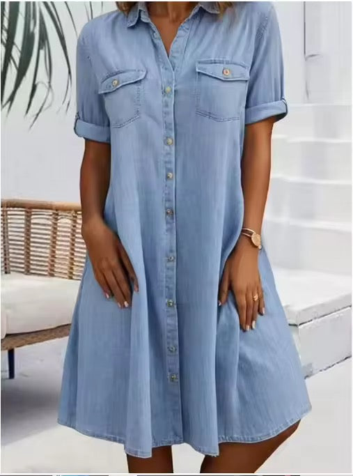 Teresa Denim Midi Jurk is zo'n item dat je keer op keer uit de kast trekt. Gemaakt van soepel vallend, ademend denim dat heerlijk zit en moeiteloos met je meebeweegt. De relaxte pasvorm, opgerolde mouwtjes en subtiele V-hals geven de jurk een nonchalante, vrouwelijke uitstraling, precies goed voor een dagje stad, een lunch met vrienden of zelfs een casual kantoorlook. Combineer met sneakers, sandalen of een riempje in de taille voor net wat meer vorm. Verkrijgbaar in meerdere kleuren, dus eindeloos te stylen naar jouw smaak.