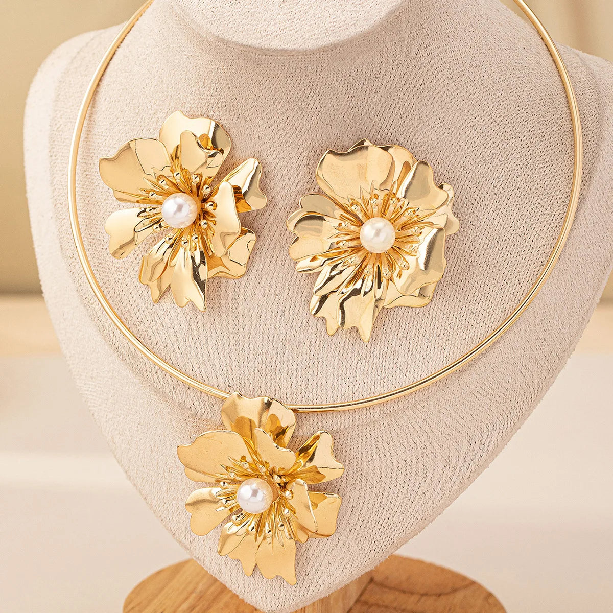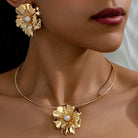 De Janine Floral Goldplated Set is een elegante sieradenset bestaande uit een verfijnde goudkleurige choker en bijpassende statement oorbellen. Met hun organisch gevormde bloemenontwerp en subtiele pareldetail straalt deze set kracht en vrouwelijkheid uit. Perfect voor wie op zoek is naar een sieraad dat zowel modern als tijdloos is. Deze set is ontworpen voor speciale gelegenheden, maar dankzij het lichte draagcomfort en de flexibele pasvorm kun je hem net zo goed combineren met een stijlvolle outfit voor overdag. De hoogwaardige afwerking zorgt ervoor dat de sieraden hun kleur behouden dus geen verkleuring na dragen of bewaren.