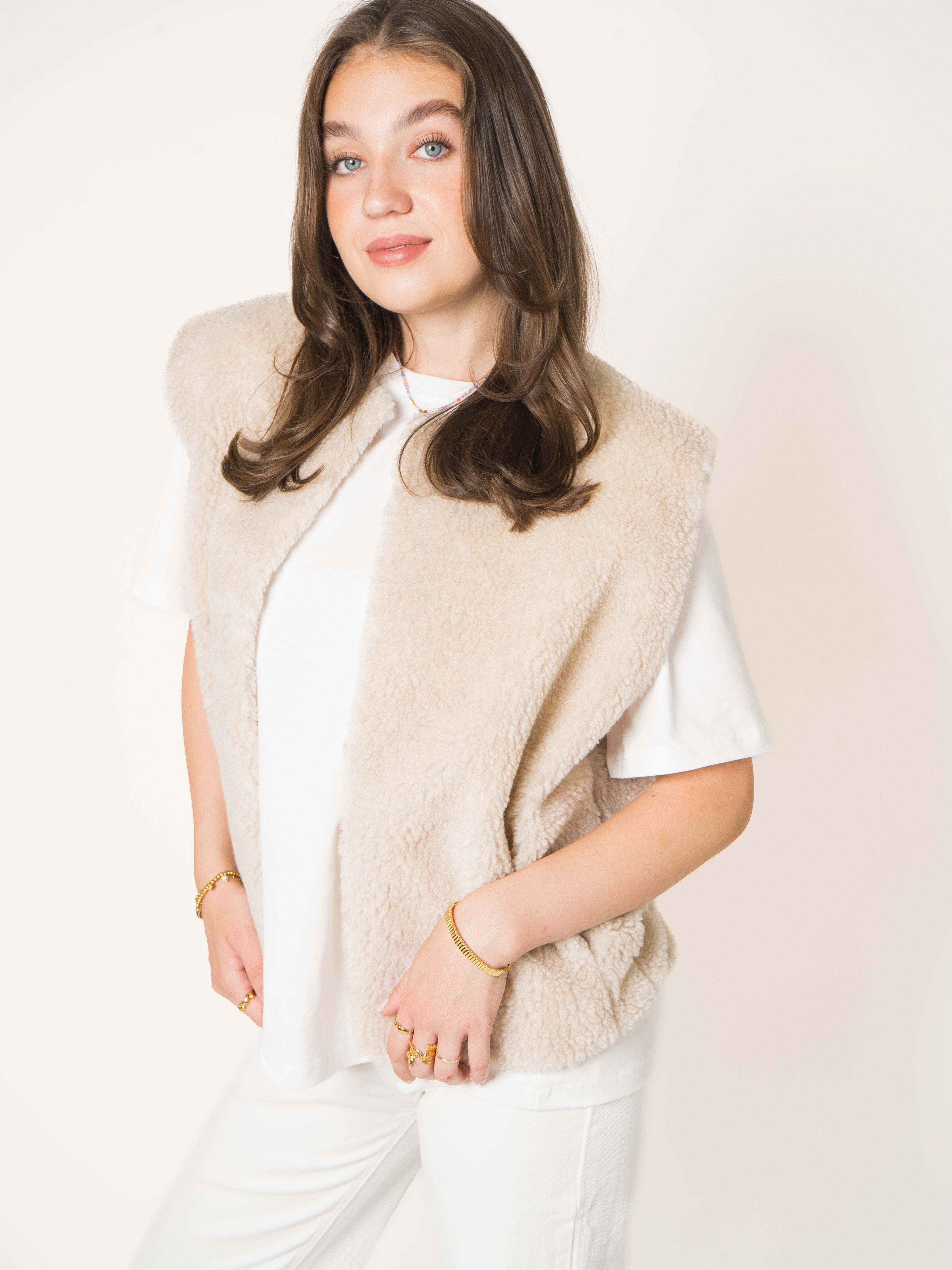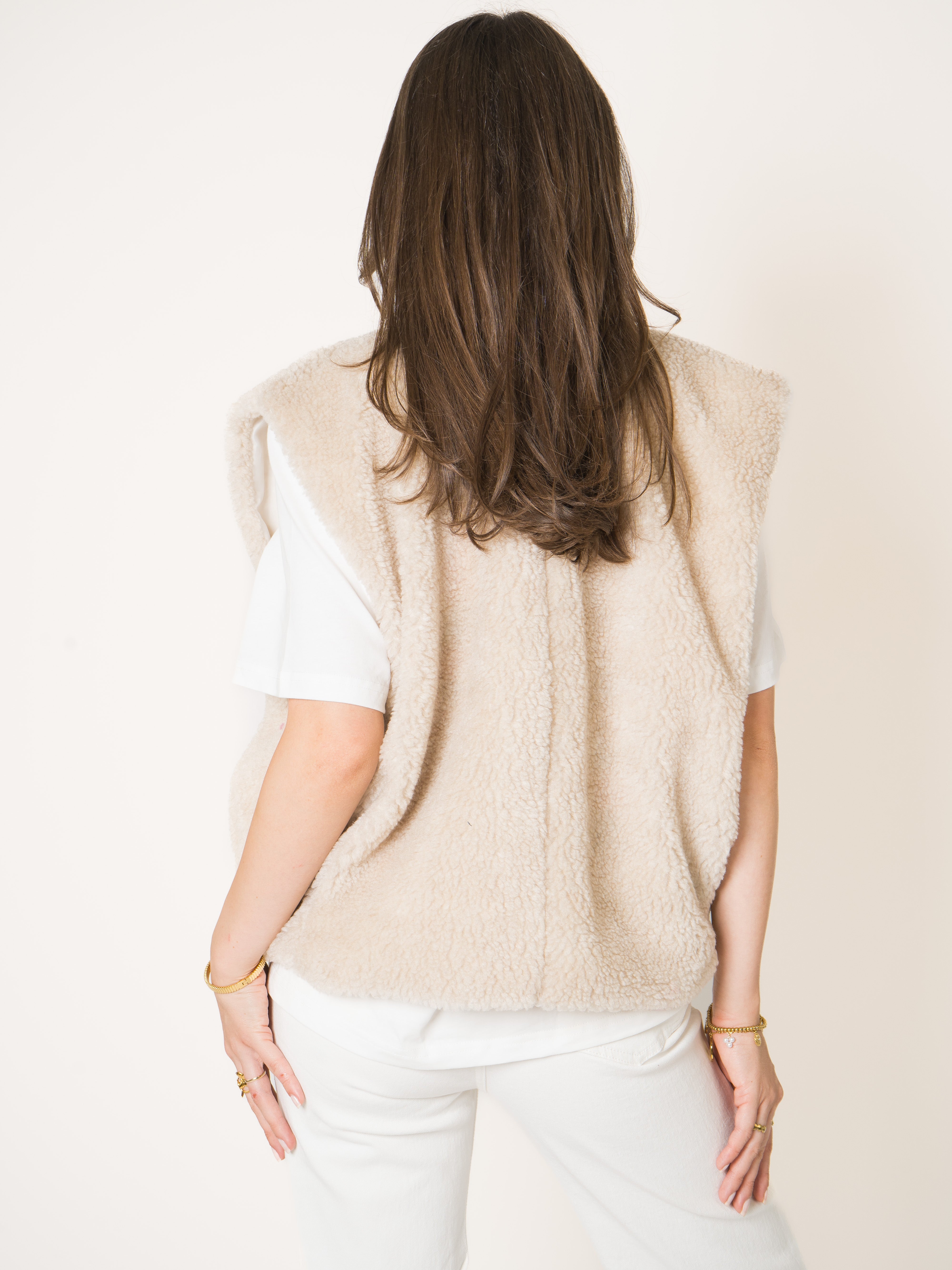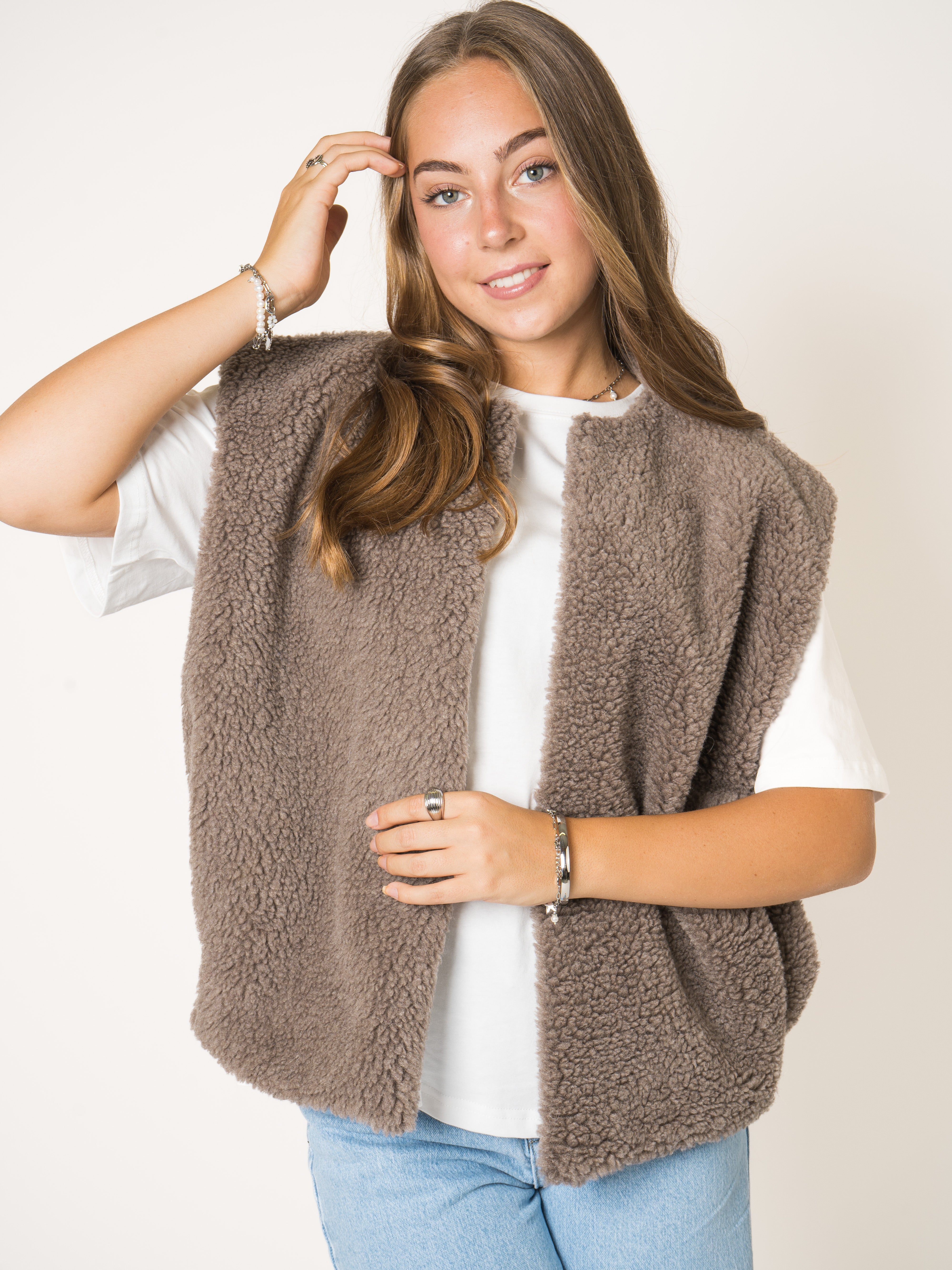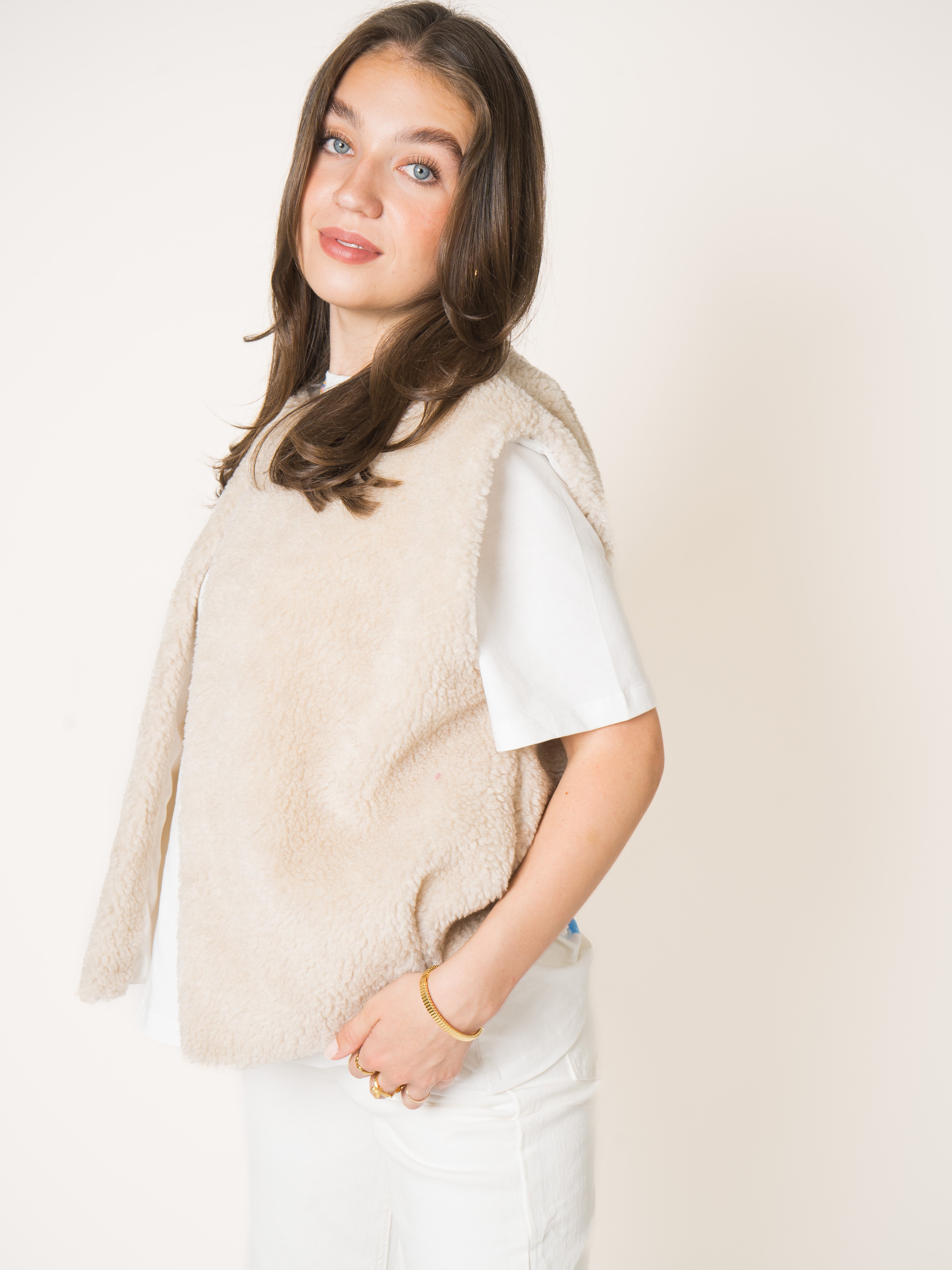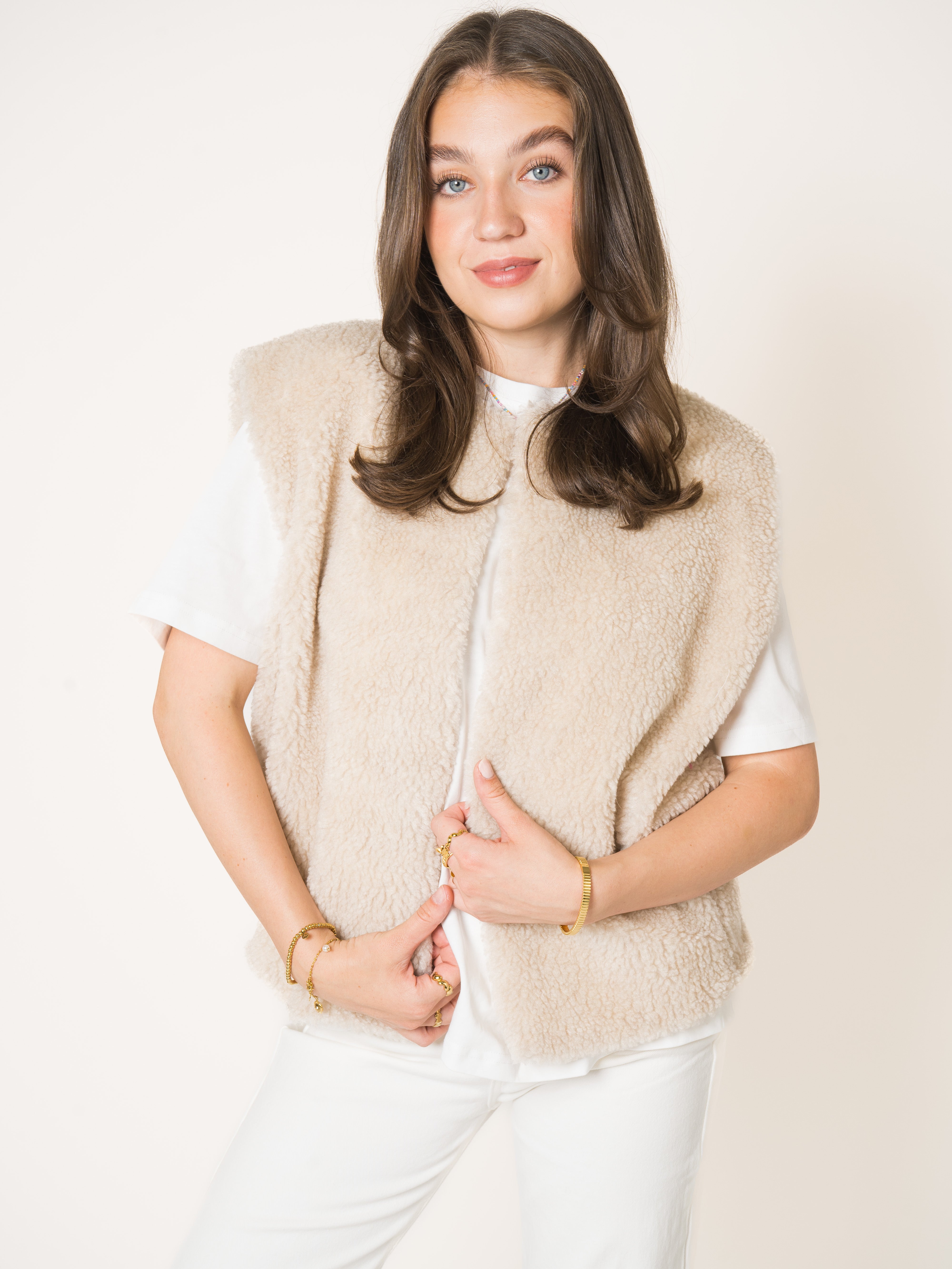 Deze bodywarmer is voor de vrouw die stijlvol voor de dag wil komen, zonder in te leveren op comfort. De zachte teddy stof voegt moeiteloos karakter toe aan elke outfit. Of je nu een wandeling maakt door de stad, een afspraak hebt op kantoor of spontaan een etentje hebt, de Julia Teddy Bodywarmer is altijd passend. De hoogwaardige, luchtige en warme stof voelt soepel aan en valt elegant om het lichaam. Dankzij de zorgvuldige afwerking en stevige kwaliteit is dit een item waar je seizoen na seizoen van zult genieten. Stijlvol met een jeans en een gebreide top voor een casual chic look, of als elegante finishing touch over een jurkje of pantalon. Deze bodywarmer is een investering in veelzijdigheid én uitstraling.