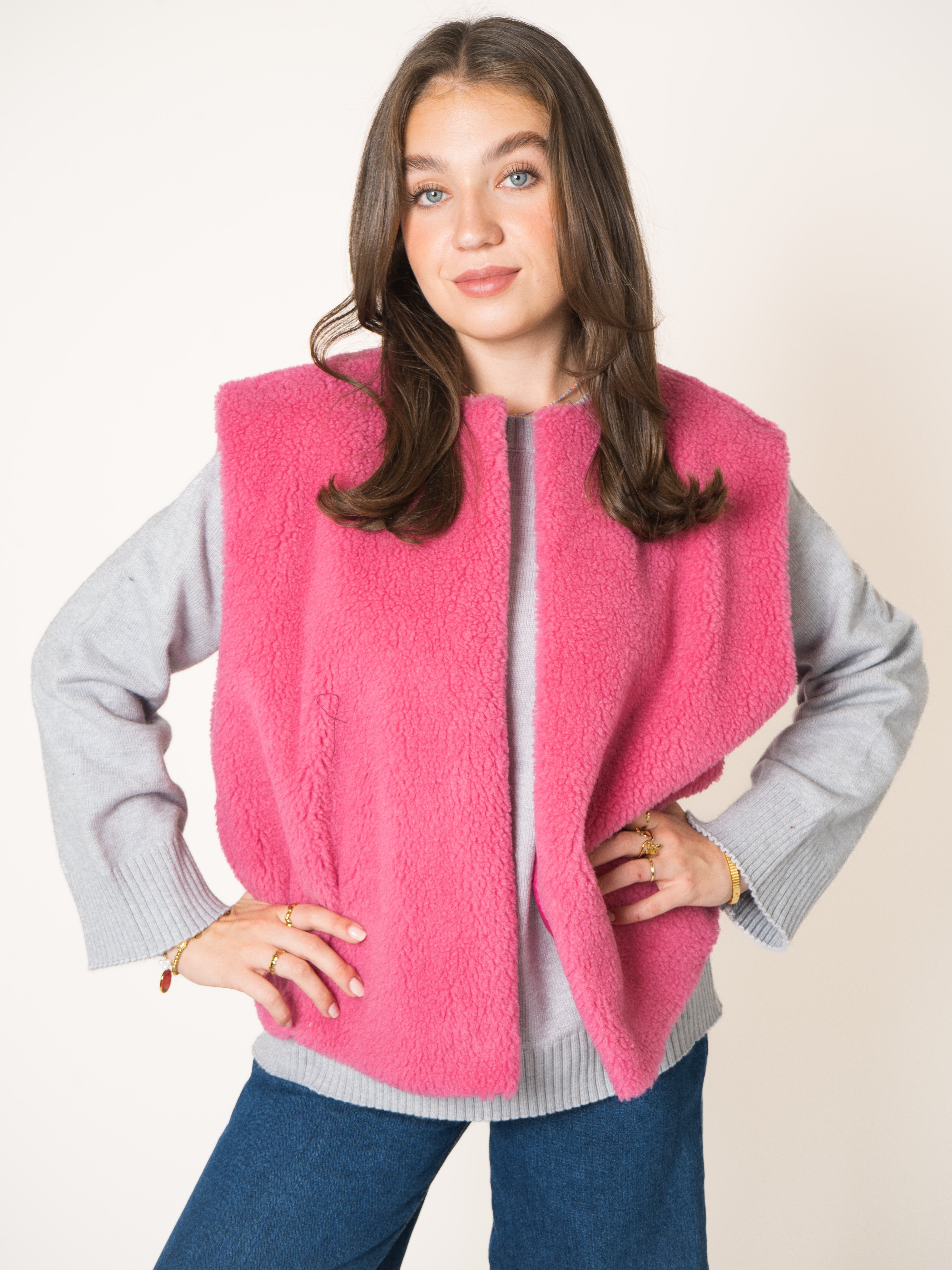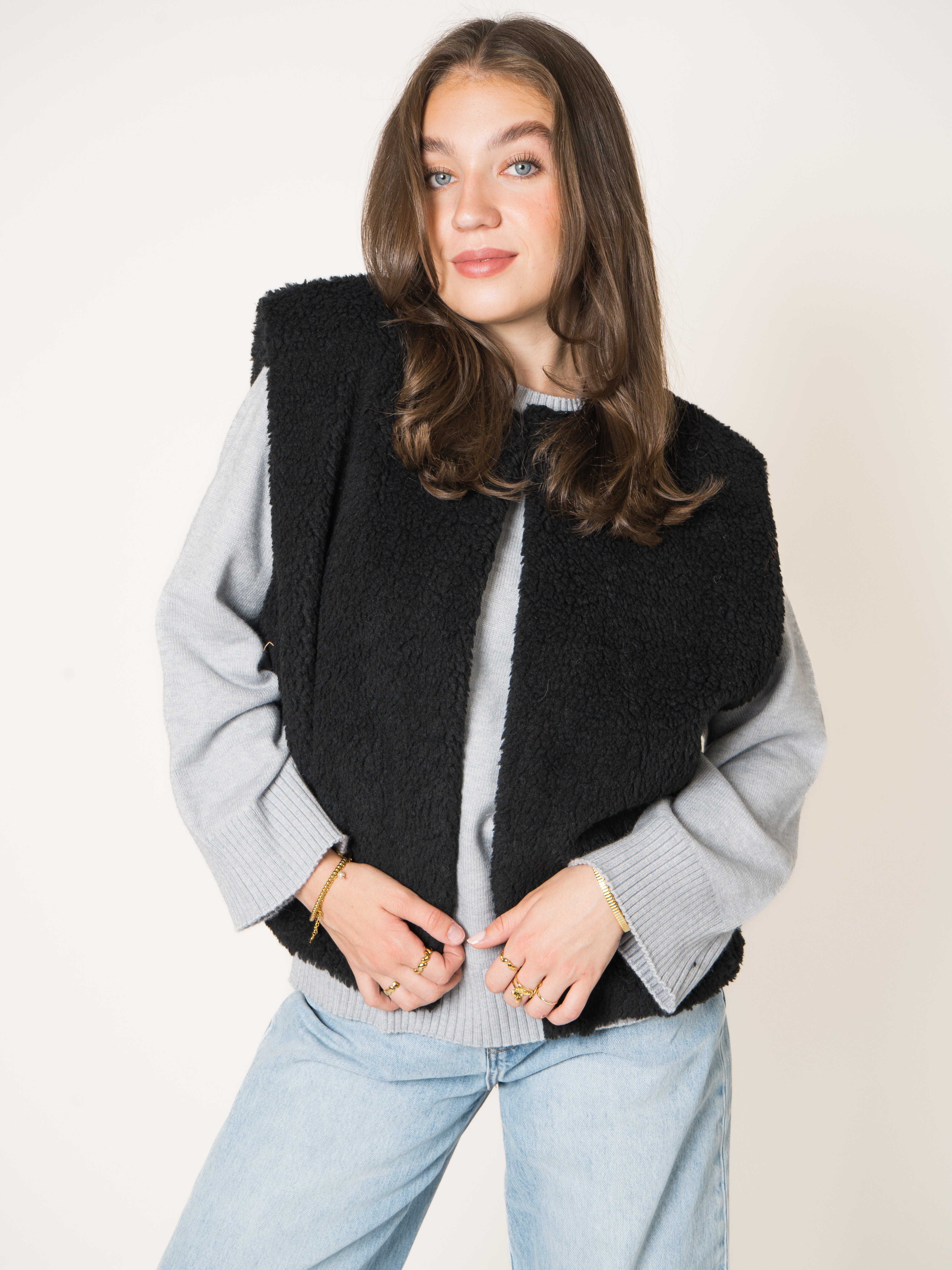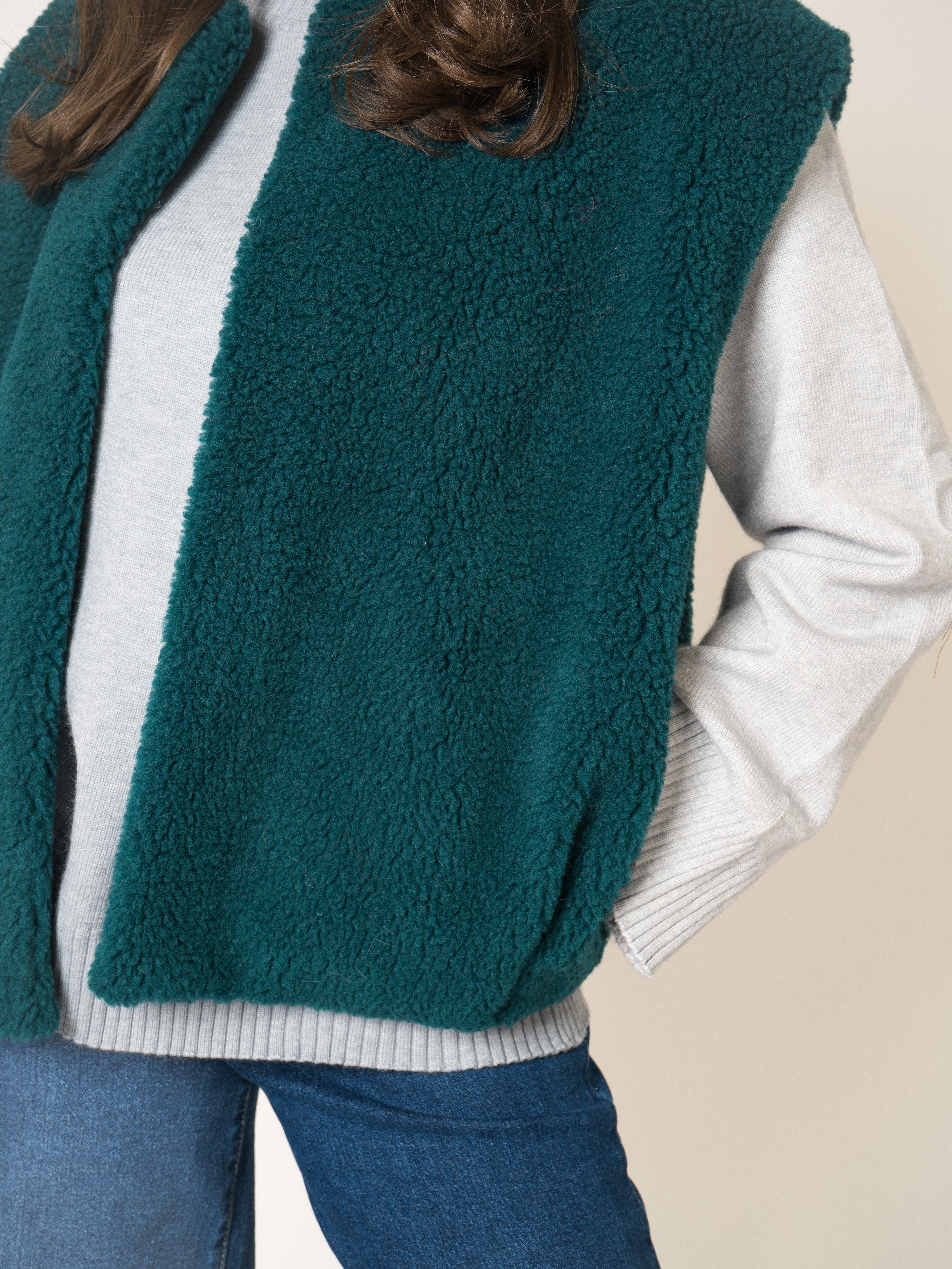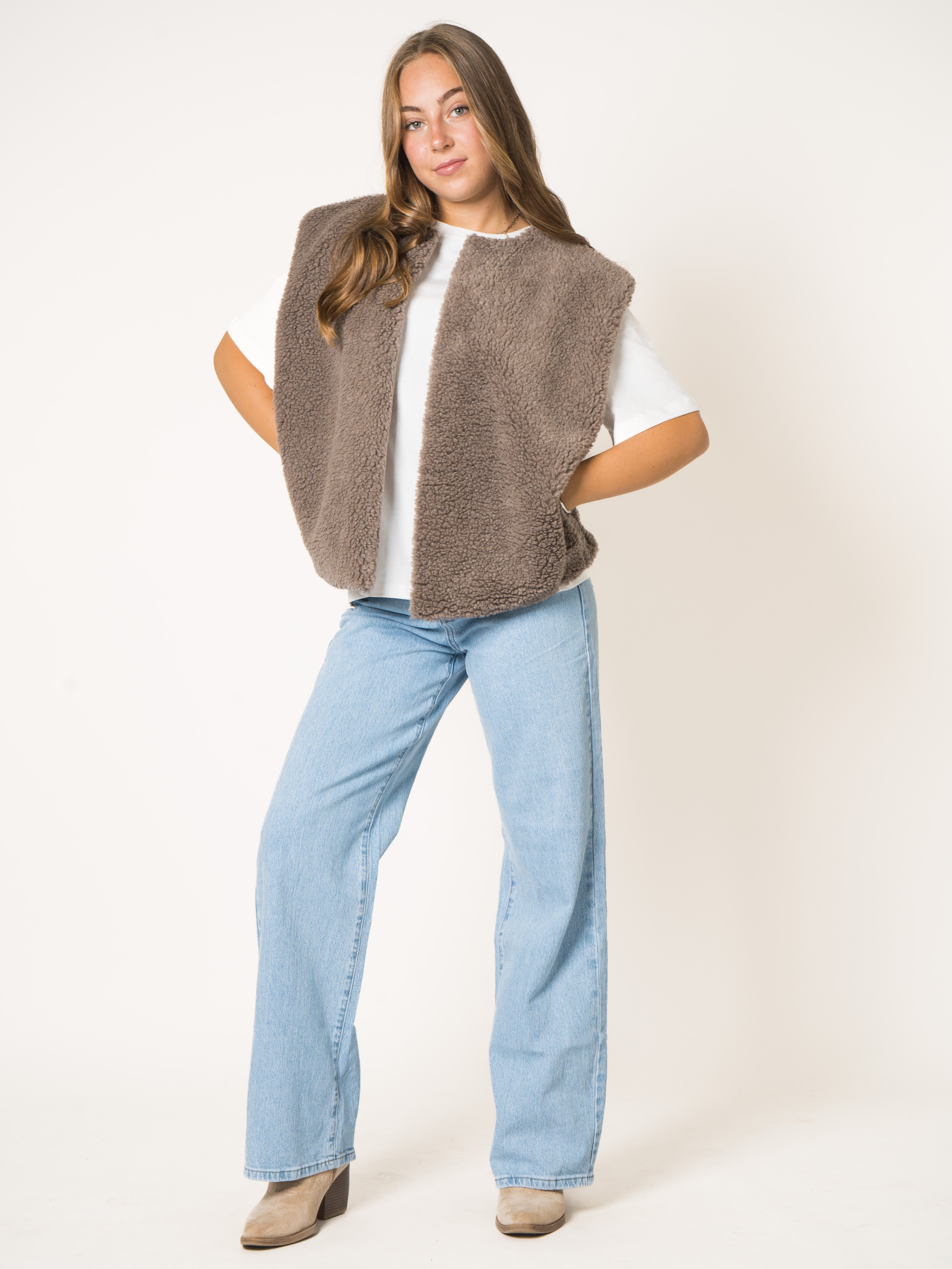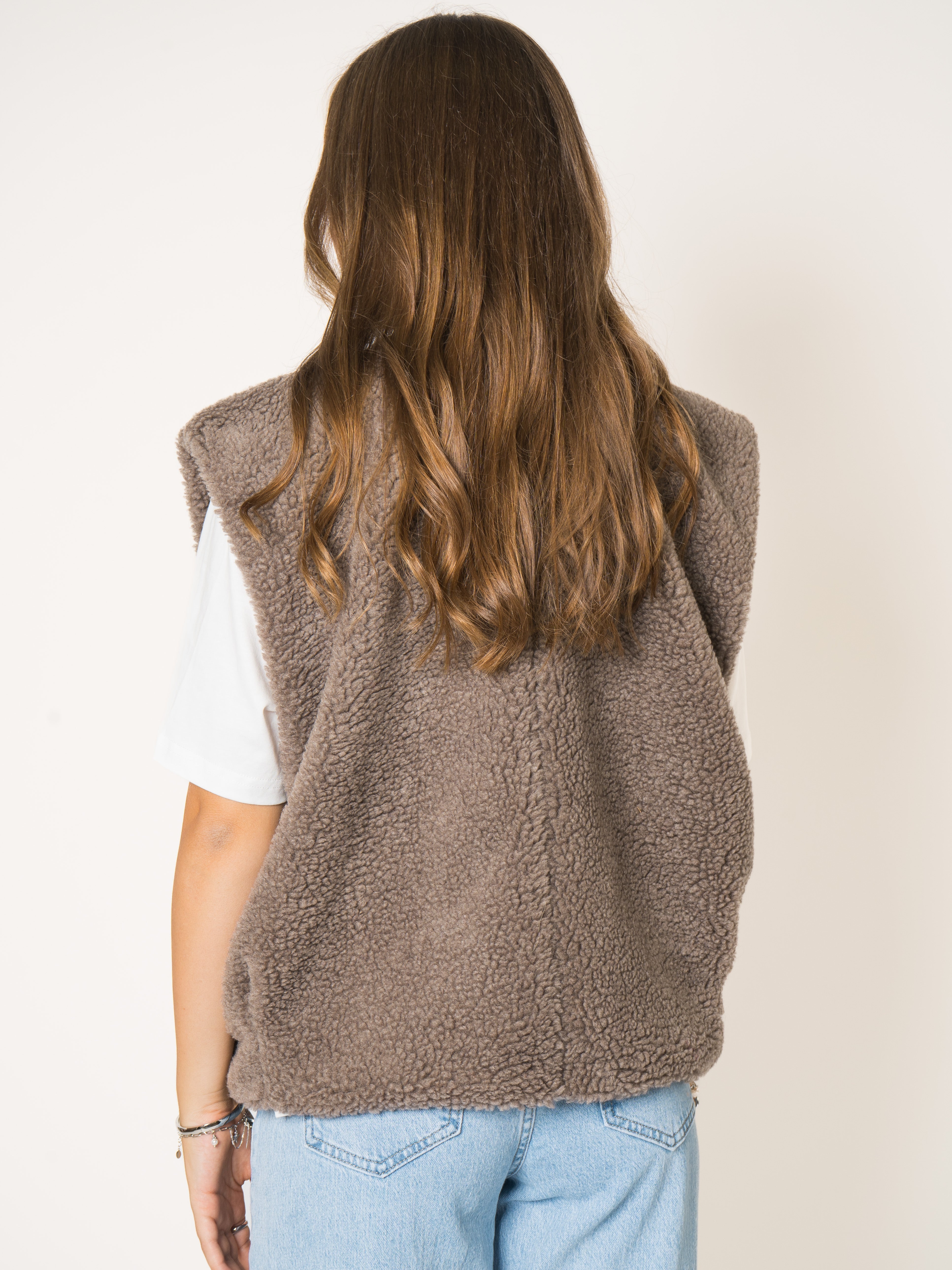 Deze bodywarmer is voor de vrouw die stijlvol voor de dag wil komen, zonder in te leveren op comfort. De zachte teddy stof voegt moeiteloos karakter toe aan elke outfit. Of je nu een wandeling maakt door de stad, een afspraak hebt op kantoor of spontaan een etentje hebt, de Julia Teddy Bodywarmer is altijd passend. De hoogwaardige, luchtige en warme stof voelt soepel aan en valt elegant om het lichaam. Dankzij de zorgvuldige afwerking en stevige kwaliteit is dit een item waar je seizoen na seizoen van zult genieten. Stijlvol met een jeans en een gebreide top voor een casual chic look, of als elegante finishing touch over een jurkje of pantalon. Deze bodywarmer is een investering in veelzijdigheid én uitstraling.