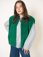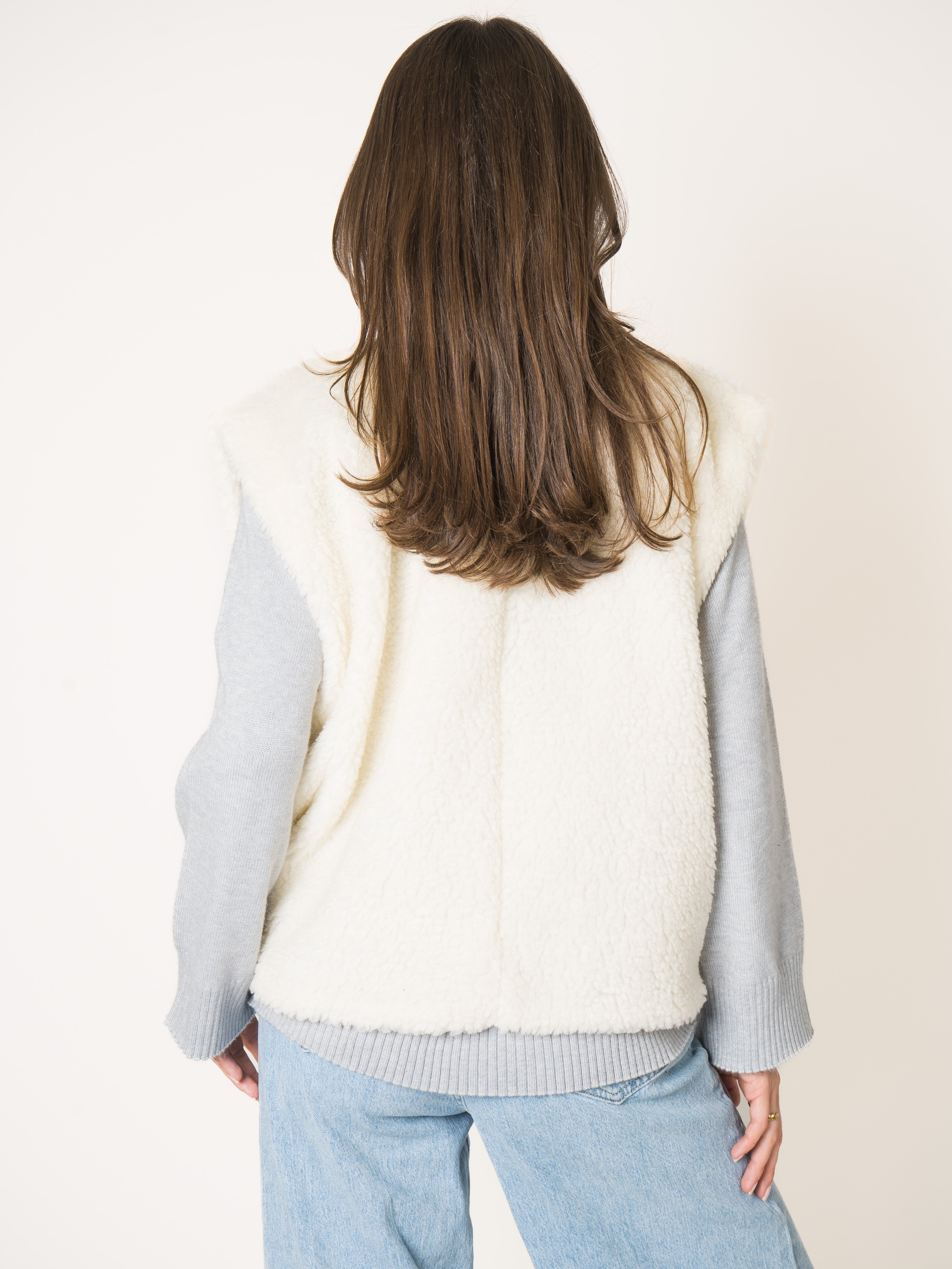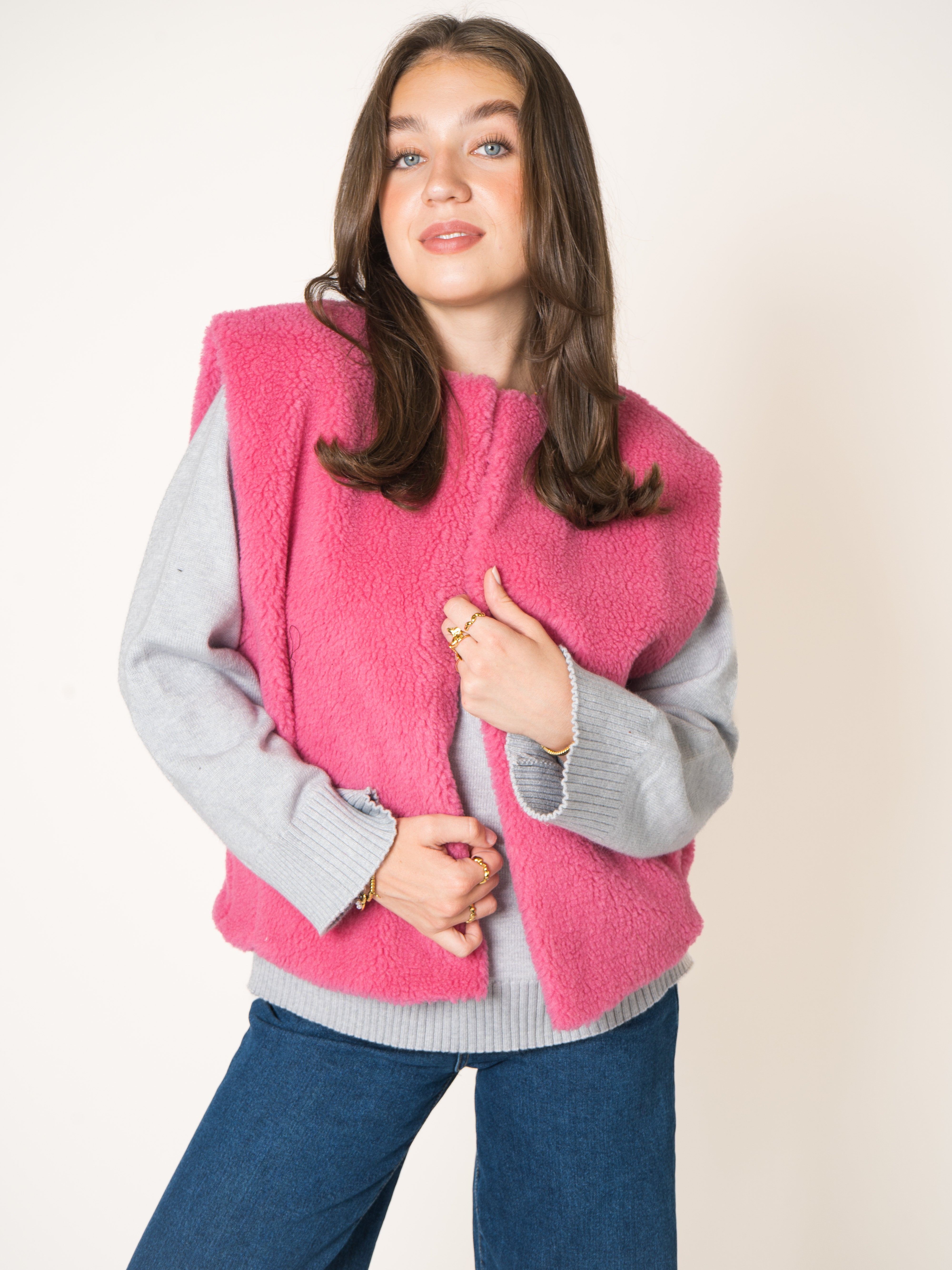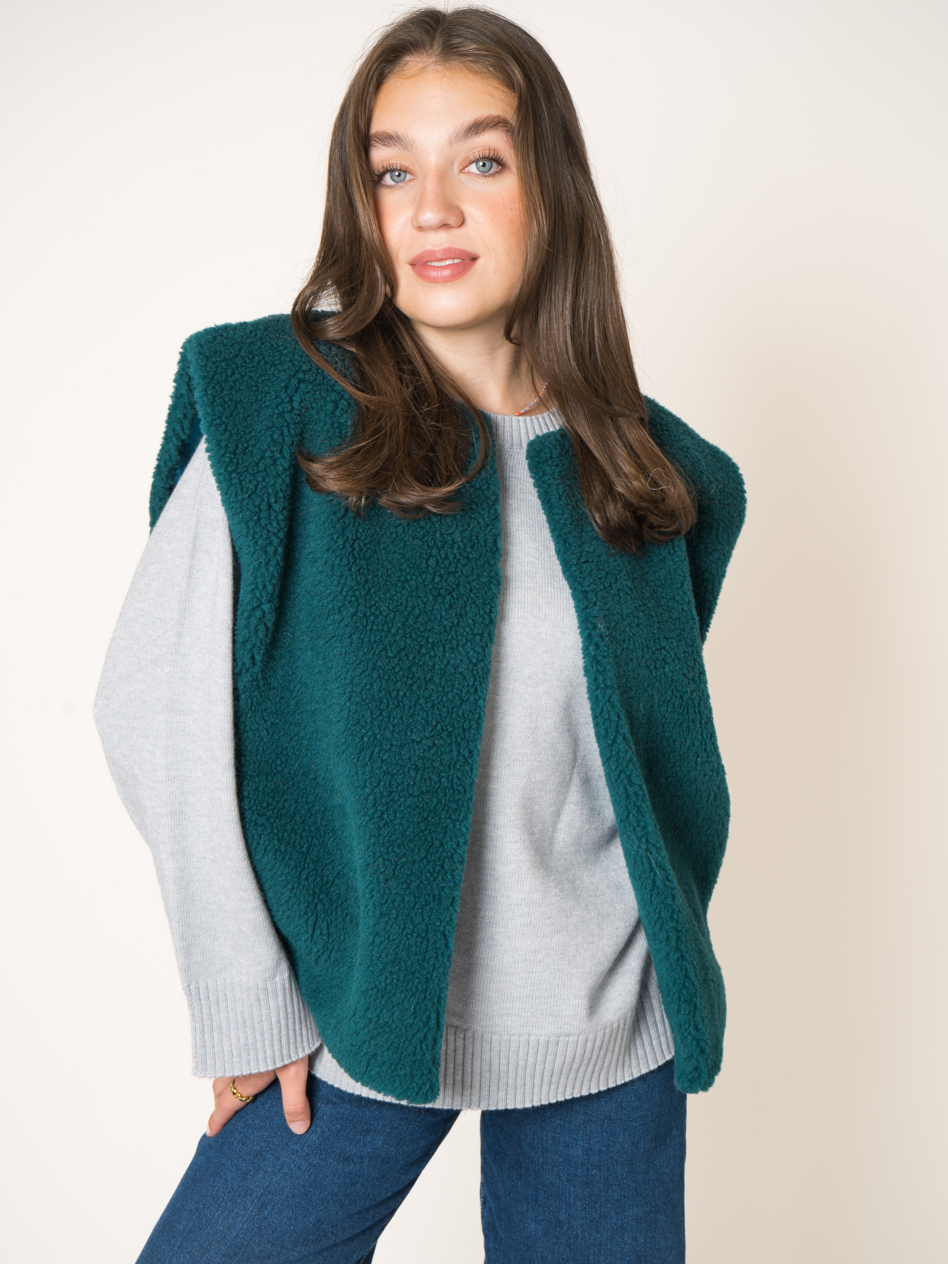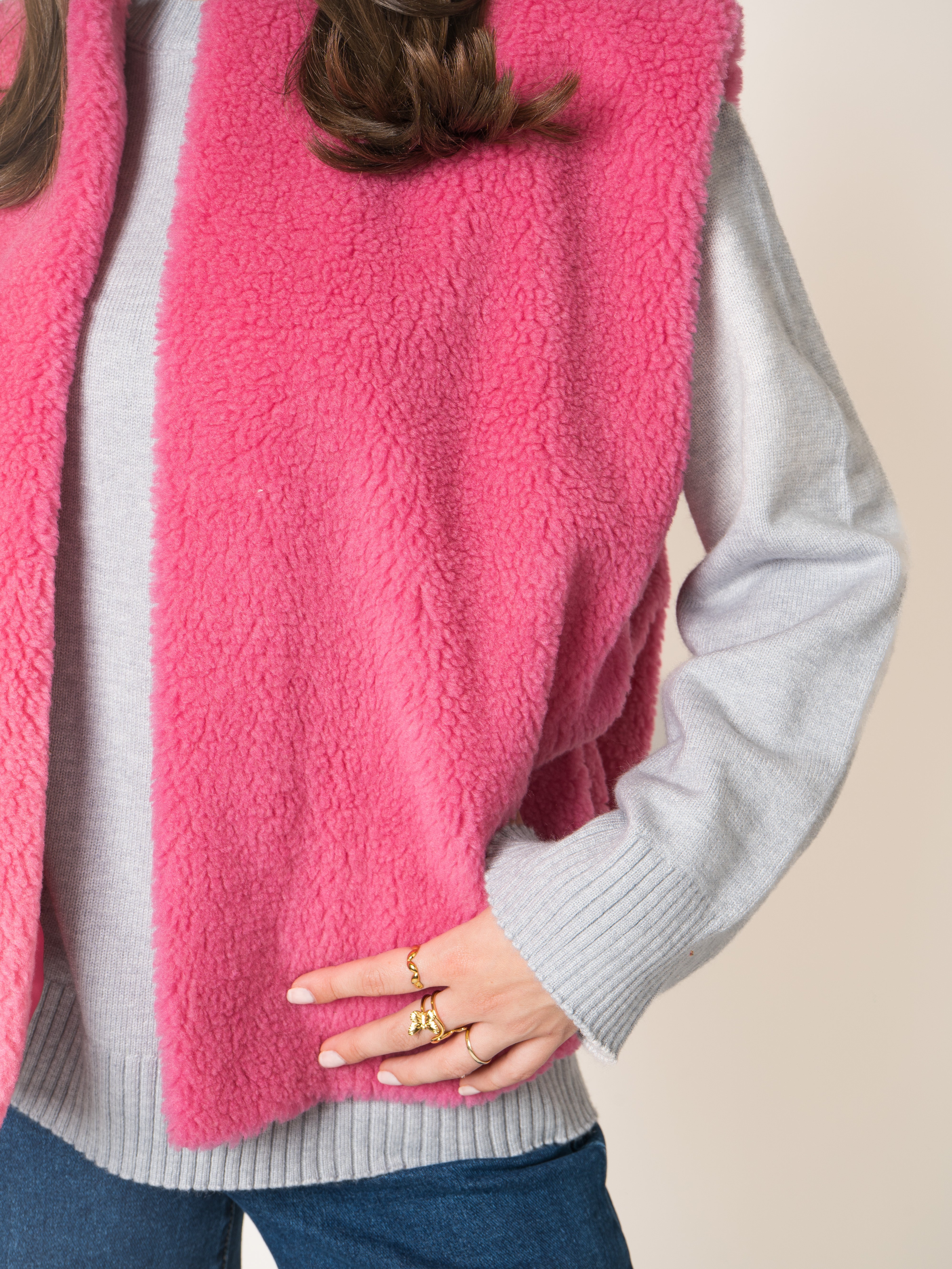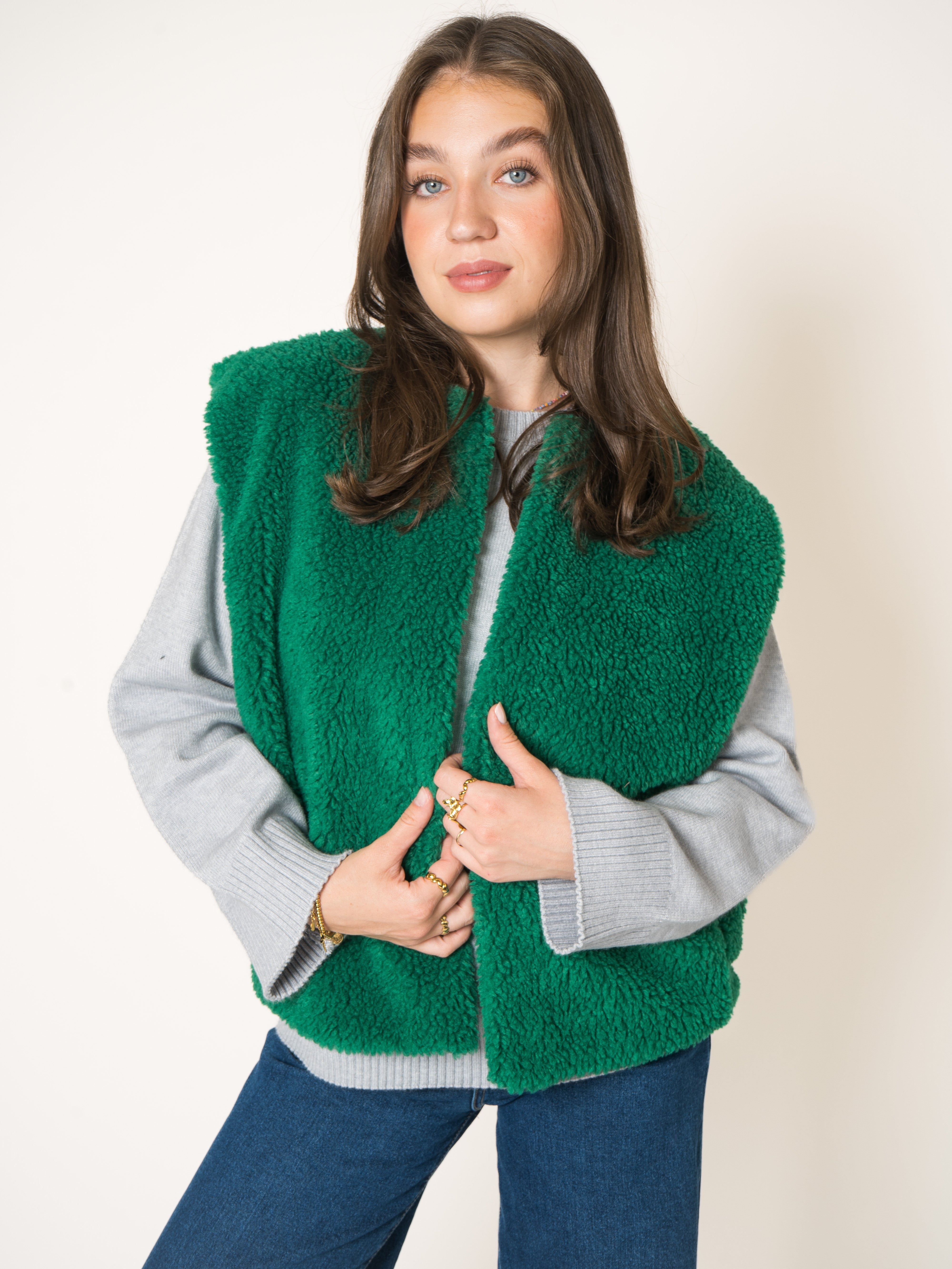 Deze bodywarmer is voor de vrouw die stijlvol voor de dag wil komen, zonder in te leveren op comfort. De zachte teddy stof voegt moeiteloos karakter toe aan elke outfit. Of je nu een wandeling maakt door de stad, een afspraak hebt op kantoor of spontaan een etentje hebt, de Julia Teddy Bodywarmer is altijd passend. De hoogwaardige, luchtige en warme stof voelt soepel aan en valt elegant om het lichaam. Dankzij de zorgvuldige afwerking en stevige kwaliteit is dit een item waar je seizoen na seizoen van zult genieten. Stijlvol met een jeans en een gebreide top voor een casual chic look, of als elegante finishing touch over een jurkje of pantalon. Deze bodywarmer is een investering in veelzijdigheid én uitstraling.