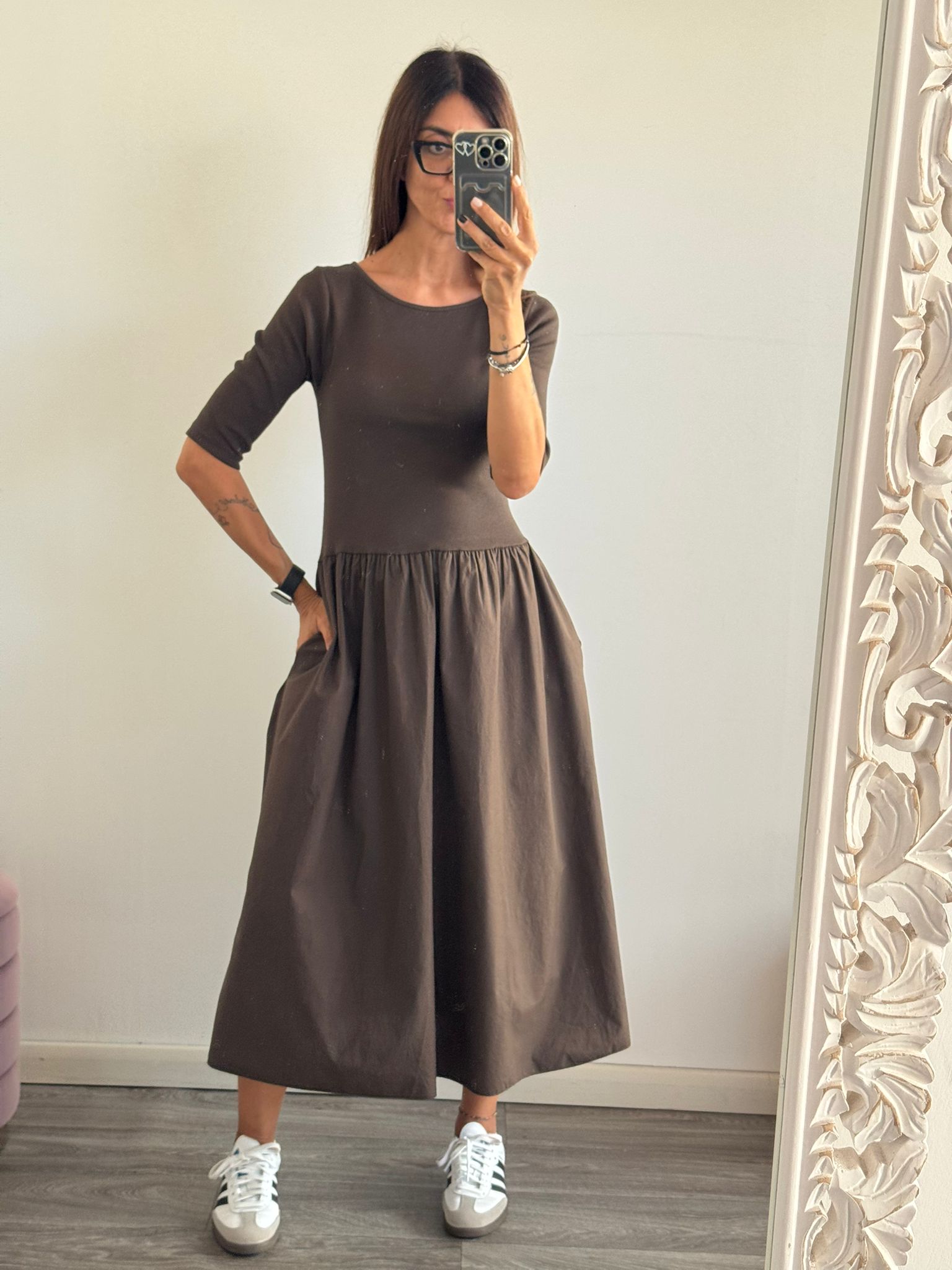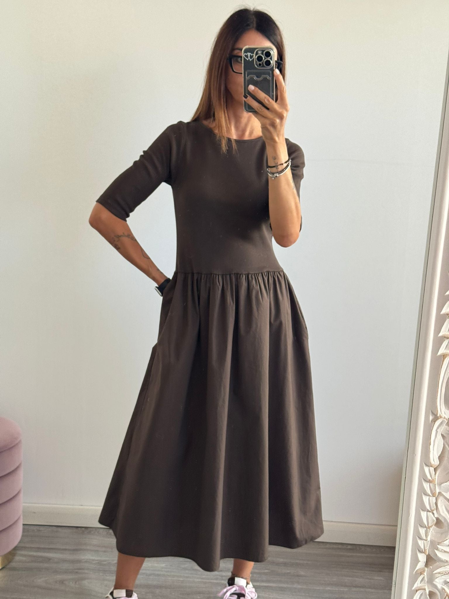 - Comfortabele pasvorm: bovenstuk licht getailleerd, rok soepelvallend