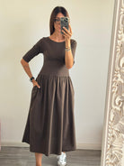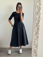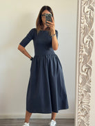 De Denise Midi Jurk is jouw go-to jurk voor dagen waarop je er verzorgd uit wilt zien zonder moeite te doen. Het tijdloze design met halve mouwen en een elegante ronde halslijn maakt haar geschikt voor iedere gelegenheid. De luchtige katoenmix voelt zacht en ademend aan, terwijl de los vallende snit met een subtiel getailleerd bovenstuk zorgt voor een vrouwelijke en flatterende pasvorm. Dankzij de praktische lengte en het comfortabele model beweeg je vrij en blijf je de hele dag stijlvol. Overdag draag je haar casual met sandalen of sneakers, en ’s avonds combineer je de jurk eenvoudig met een hakje en sieraden voor een elegante uitstraling.