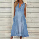 De Gaby Maxi Denim Jurk is de perfecte mix van casual comfort en stijlvolle flair. Gemaakt van een zachte, ademende denim stof en ontworpen in een mouwloos, los vallend model. Deze jurk past zich moeiteloos aan elke gelegenheid aan, van een relaxte dag met sneakers tot een diner met hakken en accessoires. Tijdloos, comfortabel en altijd goed, de Gaby Maxi Jurk is een favoriet die je het hele seizoen door blijft dragen.