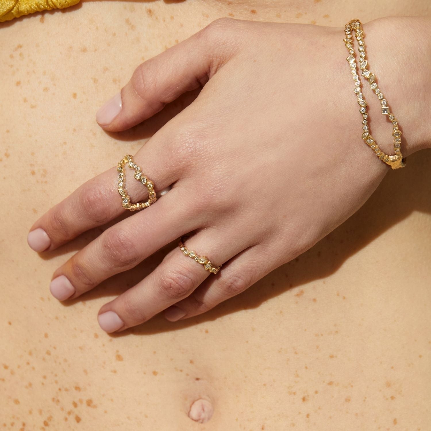 Voeg een vleugje tijdloze elegantie toe aan je look met de Magali Elegante Ring. Deze verfijnde ring combineert klassiek design met moderne subtiliteit en is daardoor perfect voor elke gelegenheid. Het gladde, elegante ontwerp zorgt ervoor dat de ring moeiteloos past bij zowel alledaagse outfits als meer feestelijke looks. Dankzij de hoogwaardige afwerking voelt de ring comfortabel aan en behoudt hij zijn schoonheid, seizoen na seizoen. Of je hem nu solo draagt als subtiel statement of combineert met andere sieraden voor een gelaagde stijl, de Magali Elegante Ring tilt elke outfit naar een hoger niveau. Een veelzijdig sieraad dat niet mag ontbreken in jouw collectie.