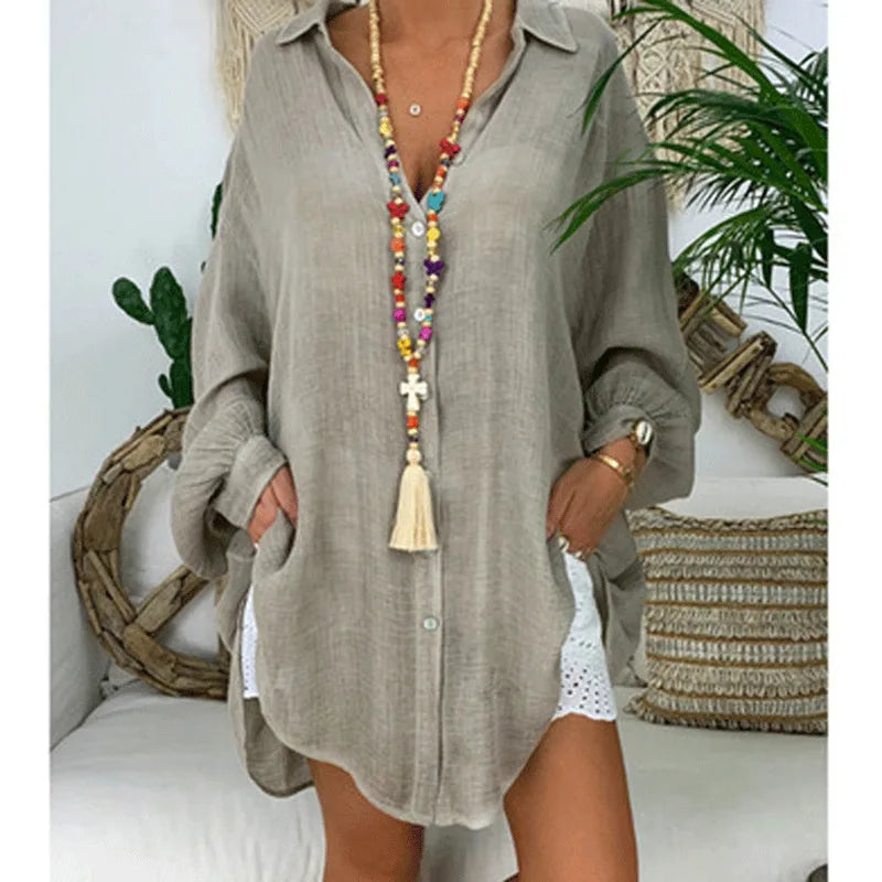 De Nadia Linnen Blouse is elegant, tijdloos en ideaal voor elke dag. Gemaakt van 100% ademend linnen van hoge kwaliteit, waardoor je je zelfs bij hoge temperaturen comfortabel en fris blijft voelen. De rechte pasvorm valt mooi losjes, zonder vorm te verliezen, en geeft de blouse een verfijnde, moeiteloze uitstraling. Combineer de blouse met een linnen broek of rok voor een stijlvolle en luchtige look. Of je nu naar je werk gaat, een lunchafspraak hebt, op vakantie bent of geniet van een etentje op het terras, de Nadia Linnen Blouse past zich moeiteloos aan elke gelegenheid aan.
