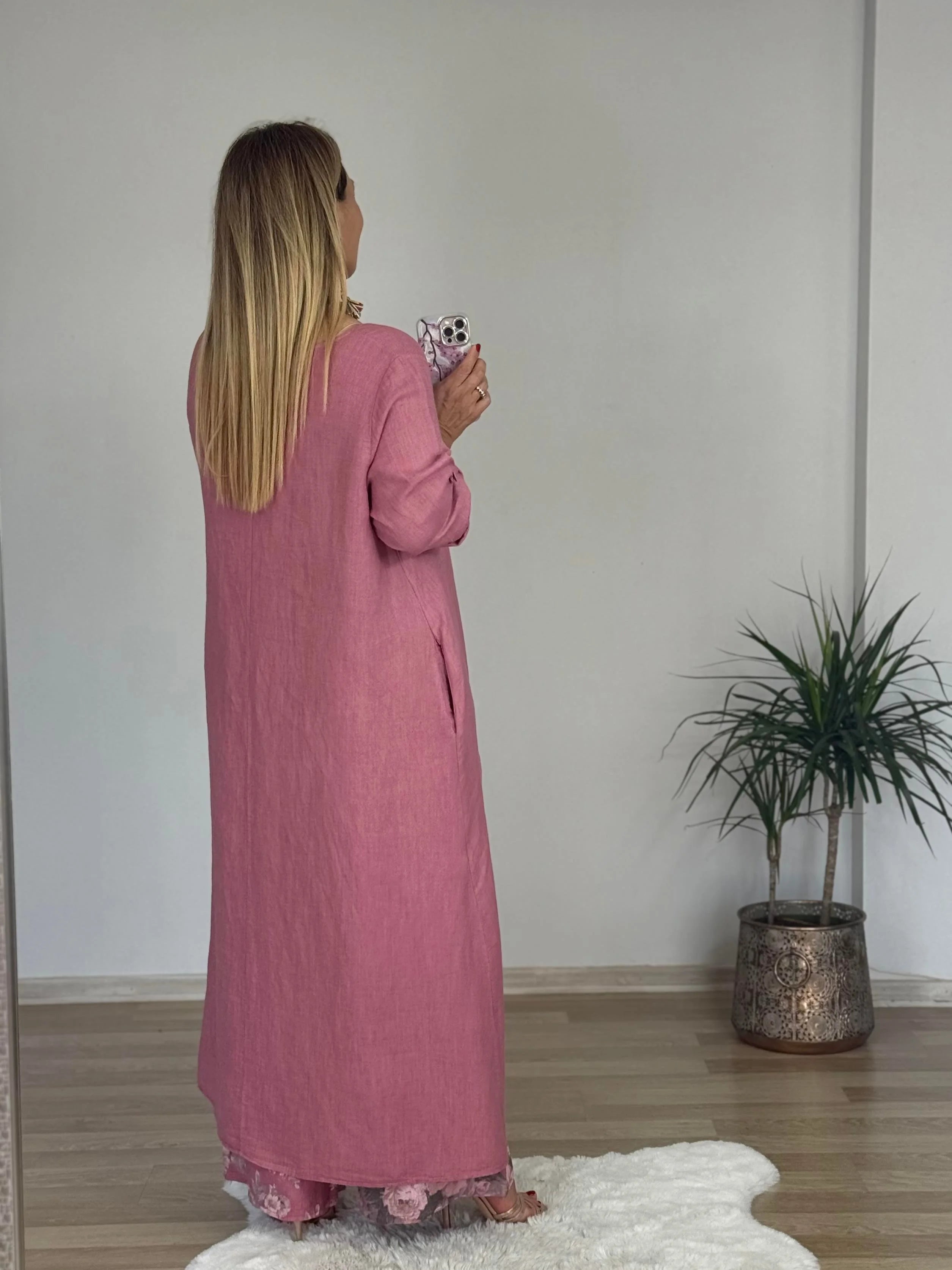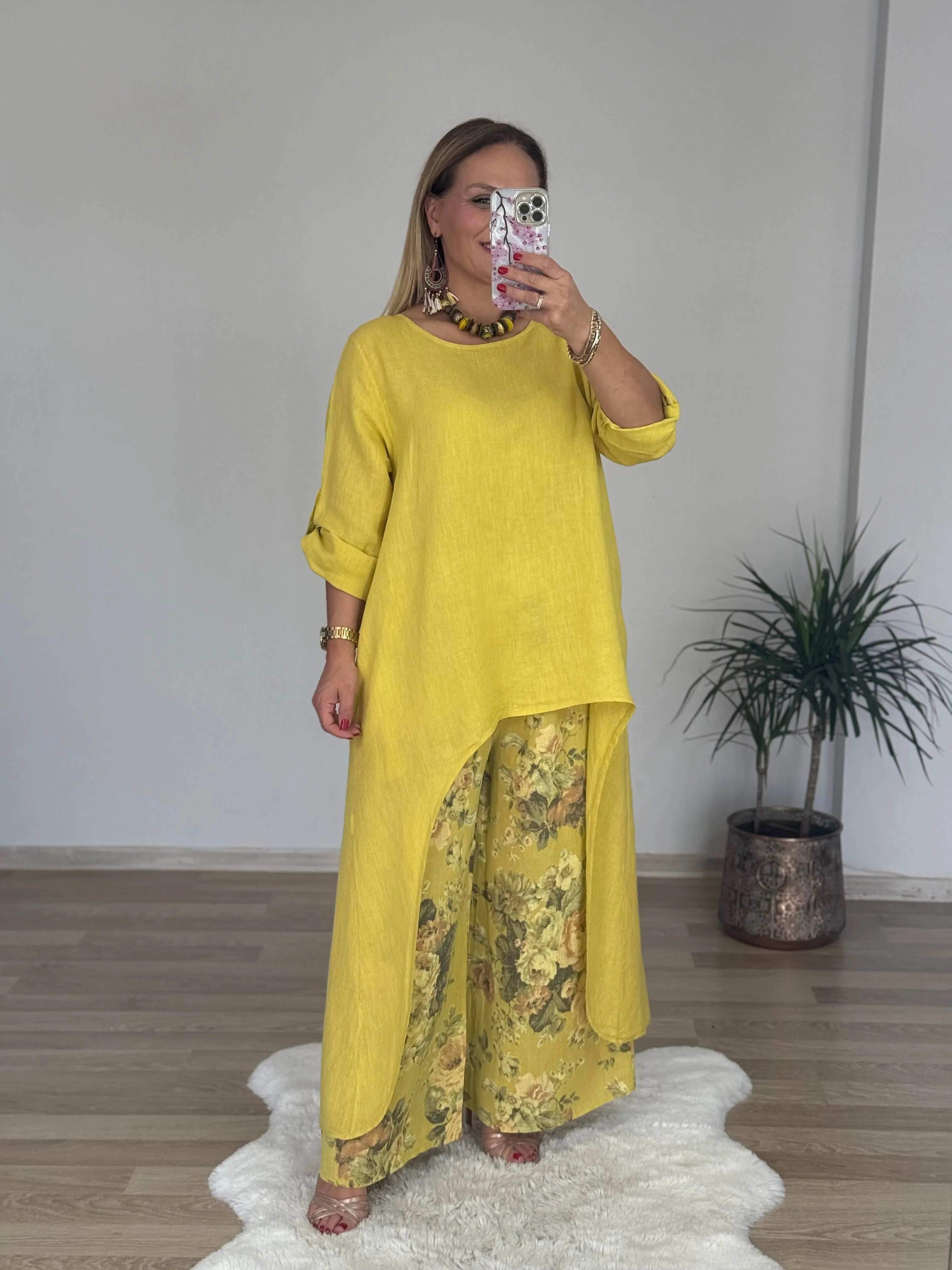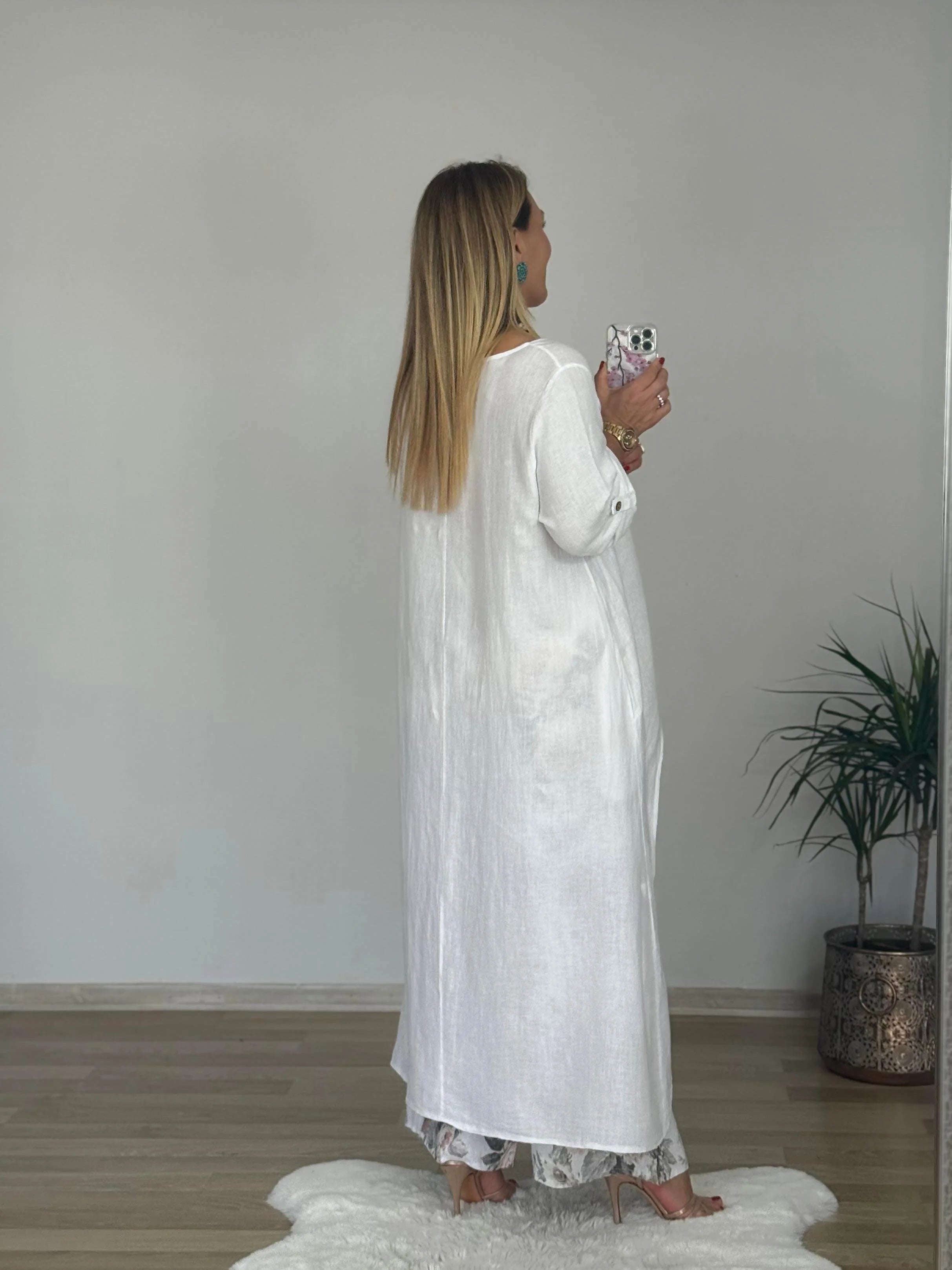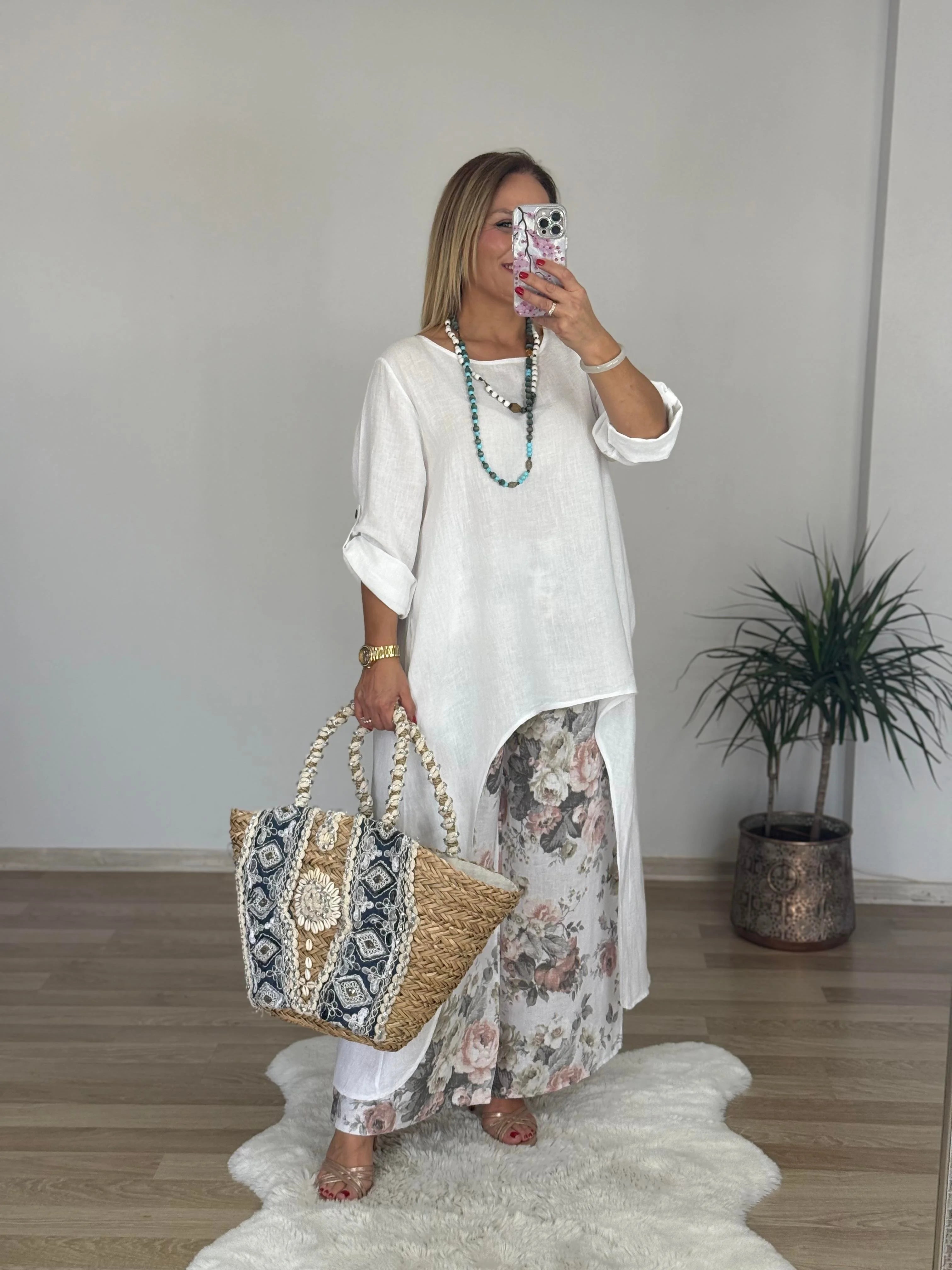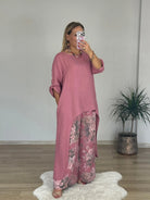 Tijdloze elegantie en moeiteloos comfort komen samen in de Stefanie Co-ord Set. Deze set is perfect voor wie houdt van een relaxte, maar stijlvolle look zonder concessies te doen aan uitstraling. De soepele stof voelt licht en aangenaam aan, terwijl het verfijnde design zorgt voor een elegante uitstraling. De asymmetrische, lange blouse in combinatie met de losvallende broek geeft een speelse, maar toch chique touch. Of je nu een ontspannen dagje uit plant of stijlvol voor de dag wilt komen tijdens een diner aan zee, deze set is altijd een perfecte keuze.