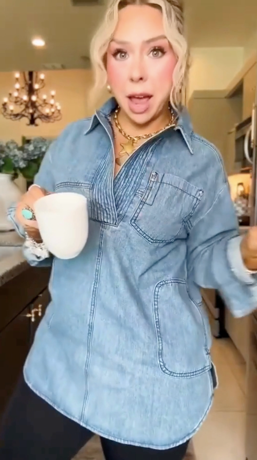 De Vanessa Denim Blouse is een echte klassieker die elke outfit direct een stijlvolle en tijdloze uitstraling geeft. Het denim materiaal zorgt voor een moderne, stoere touch, terwijl de vrouwelijke pasvorm en het los vallende model zorgen voor een comfortabele fit die je de hele dag prettig kunt dragen. Ideaal voor zowel werk als vrije tijd, van een dag op kantoor tot een etentje of een ontspannen weekenddag. Dankzij de veelzijdigheid van deze blouse kun je alle kanten op. Combineer haar met een nette broek voor een geklede look, of draag haar casual op jeans voor een volledige denim-stijl. Een denim blouse tilt je outfit altijd naar een hoger niveau en is een stuk waar je seizoen na seizoen plezier van hebt.