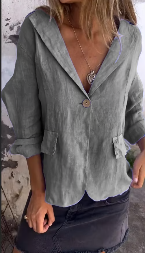De Yvette Linnen Blazer is de perfecte keuze voor dagen waarop je er verzorgd uit wilt zien zonder moeite te doen. Gemaakt van hoogwaardig, ademend linnen dat comfortabel draagt en een natuurlijke, verfijnde uitstraling geeft. De getailleerde pasvorm met subtiele schouderaccenten zorgt voor een flatterend silhouet, losjes, maar toch elegant. Deze blazer is veelzijdig te combineren: draag hem open over een top of dichtgeknoopt voor een nette look. Ideaal voor op kantoor, tijdens een lunch of een zomers diner in de stad. De lichte structuurstof voelt prettig aan op de huid, ook op warme dagen. De Yvette Blazer voegt in één beweging stijl en klasse toe aan je garderobe, luchtig, tijdloos en veelzijdig!